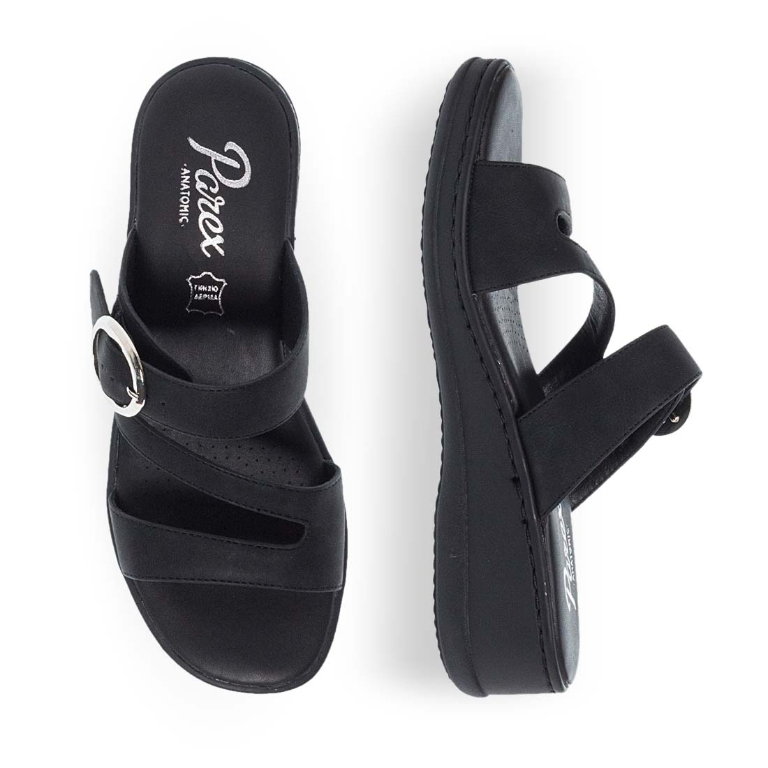 Γυναικείες comfort παντόφλες από την Parex ιδανικές για όλες τις ώρες. Διαθέτουν λουράκια στο πάνω μέρος και κλείσιμο με στρογγυλή μεταλλική αγκράφα στο πάνω μέρος ώστε να την προσαρμόσετε στο σημείο που σας εξυπηρετεί. Κατασκευασμένη εξ ολοκλήρου από συνθετικά υλικά υψηλής ποιότητας. Μαλακό πέλμα και ανθεκτικη σόλα πλατφόρμα. Διαθέσιμες σε μαύρο,μπλε και nude χρώμα ώστε να επιλέξετε αυτό που σας ταιριάζει.