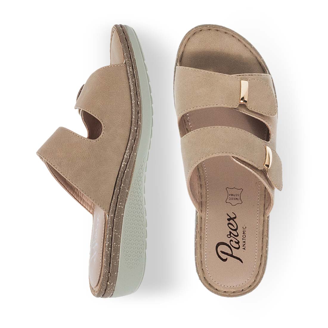 Γυναικείες κλασικές comfort παντόφλες από τη Parex με διαχρονικό χαρακτήρα. Κλείσιμο με αυτοκόλλητο Velcro για περισσότερη ευκολία. Διαθέτουν δερμάτινο πάτο και ανθεκτική σόλα που δεν γλιστράει. Aναπαυτικές καλοκαιρινές παντόφλες που θα σας ενθουσιάσουν!