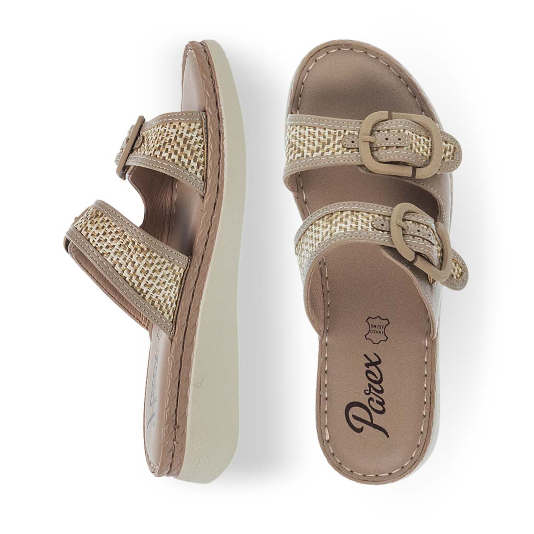 Άνετες comfort παντόφλες από την εταιρεία Parex. Ψάχνετε την άνεση και το στιλ στα καθημερινά σας βήματα; Επιλέξτε αυτές τις γυναικείες comfort παντόφλες από την Parex. Αναπαυτικός δερμάτινος πάτος για ξεκούραστα βήματα καθ''ολη τη διάρκεια της ημέρας. Οι συγκεκριμένες παντόφλες διαθέτουν διπλή φάσα και ψάθινες λεπτομέρειες.