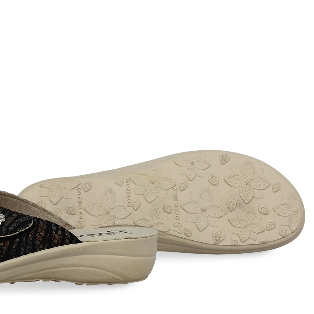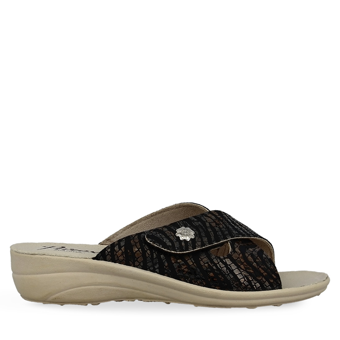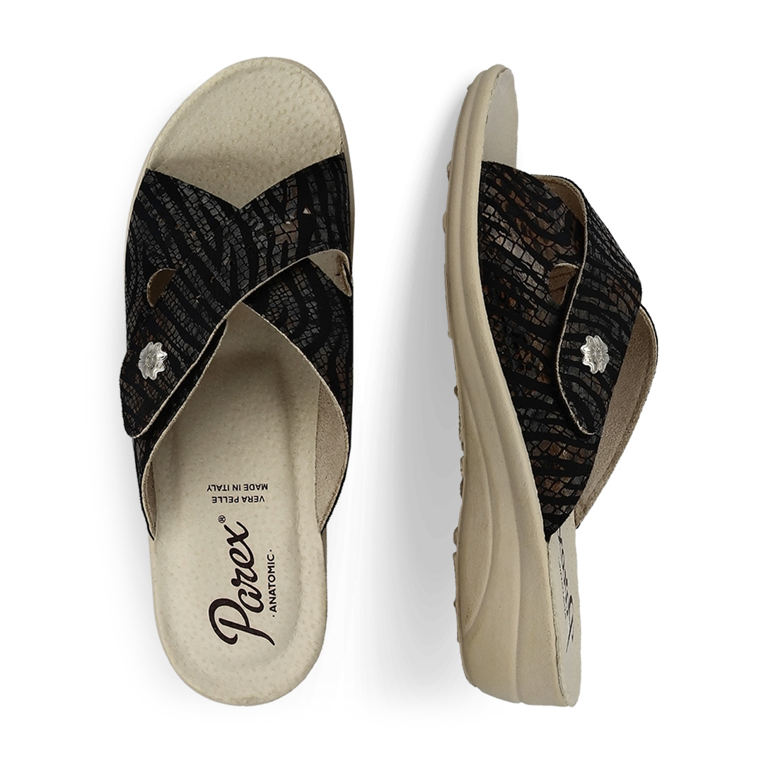 Άνετες Γυναικείες Παντόφλες Parex με χιαστί λουριά. Είναι σχεδιασμένες από ύφασμα . Οι συγκεκριμένες καλοκαιρινές παντόφλες έχουν δερμάτινο εσωτερικό πάτο , πολύ αναπαυτικό. Διαθέτουν εύκαμπτη και μαλακή σόλα. Ένας τέλειος συνδυασμός άνεσης και στιλ. Με animal print σχεδιασμό για να είστε πάντοτε στο επίκεντρο της μόδας.