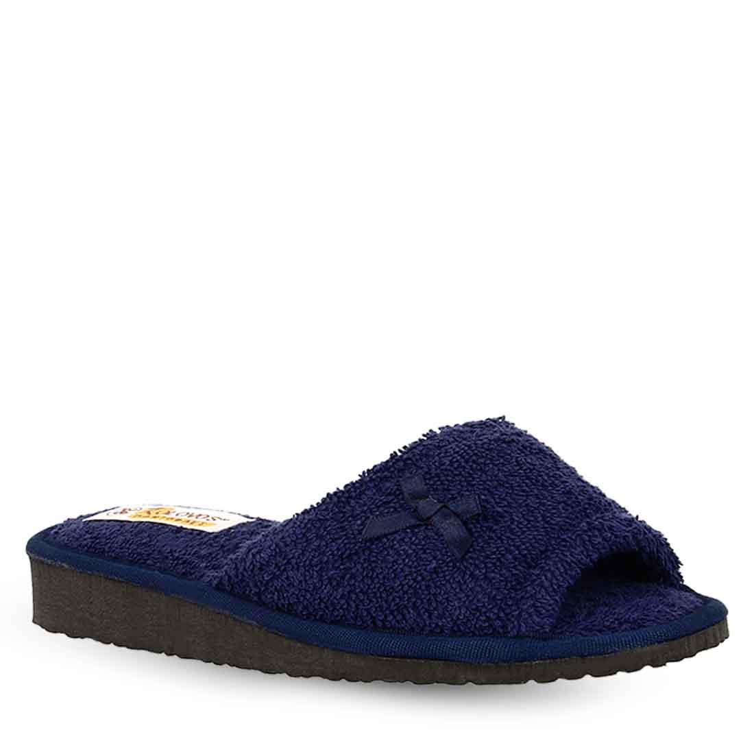 Mπουρνουζέ παντόφλες σπιτιού από την εταιρεία Κολοβός, με φάσα και άνοιγμα μπροστά με χαμηλή πλατφόρμα στη σόλα. Λεπτομέρεια φιογκάκι. Απορροφητικό, προστατευτικό ύφασμα.