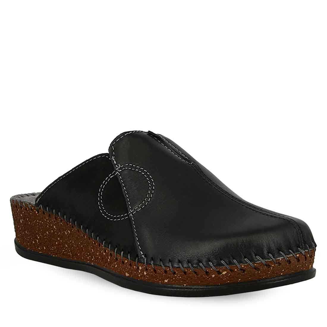 Παντόφλες σπιτιού με τακούνι. Με εξωτερική επένδυση από δερμα. Μαλακός εσωτερικός πάτος και σόλα που απορροφά τους κραδασμούς.