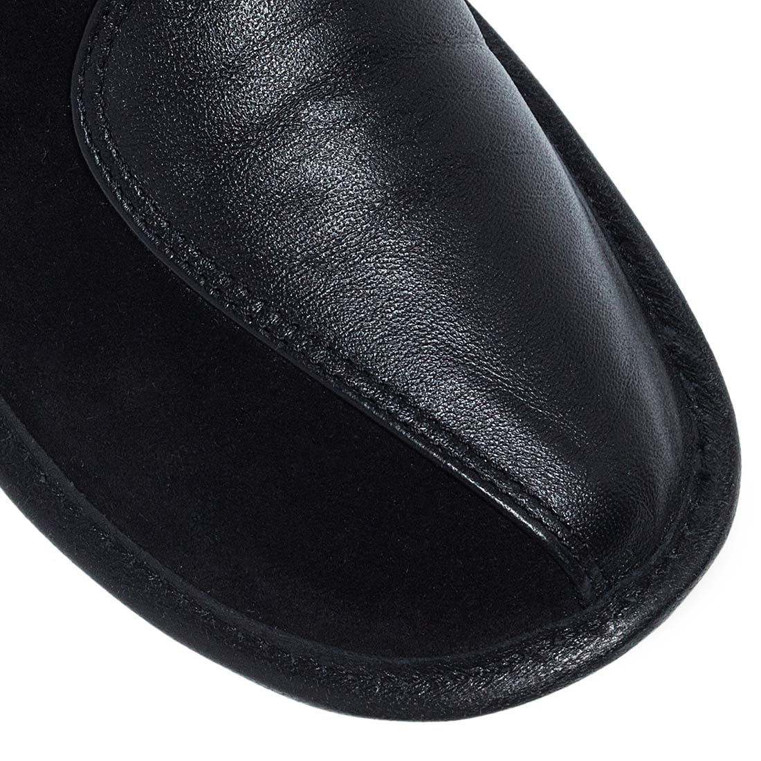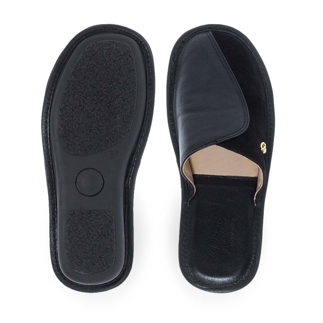 Κλασικές δερμάτινες παντόφλες σπιτιού για καθημερινή χρήση. Είναι διαθέσιμες σε δυο χρώματα, μαύρο και μπορντό. H τέλεια επιλογή για χαλάρωση μέσα στο σπίτι. Προτείνεται ένα μέγεθος μεγαλύτερο.