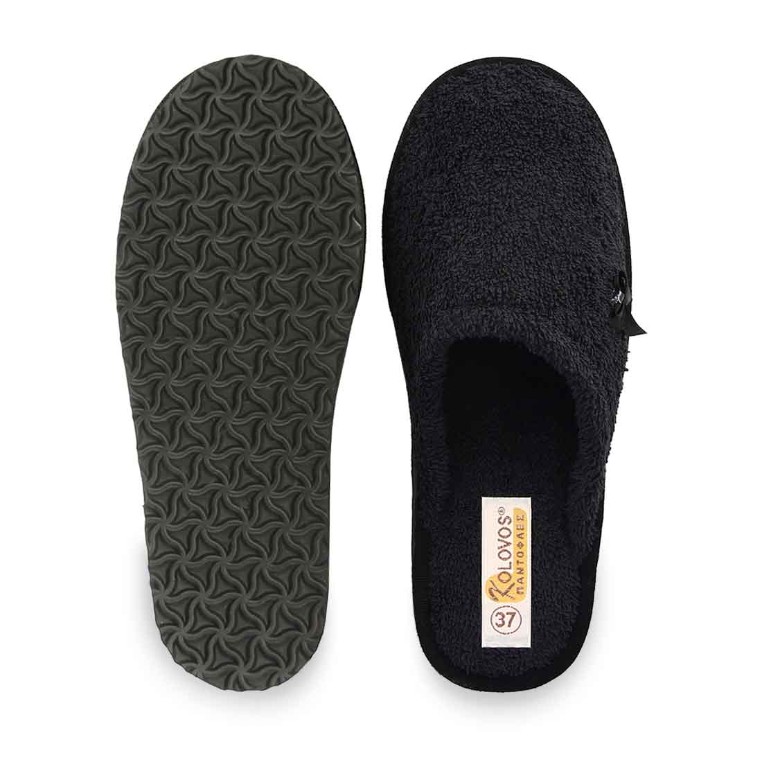 Μπουρνουζέ παντόφλες Κοlovos. Κλειστό σχέδιο μπροστά με φιογκάκι λεπτομέρεια και ενιαία σόλα.