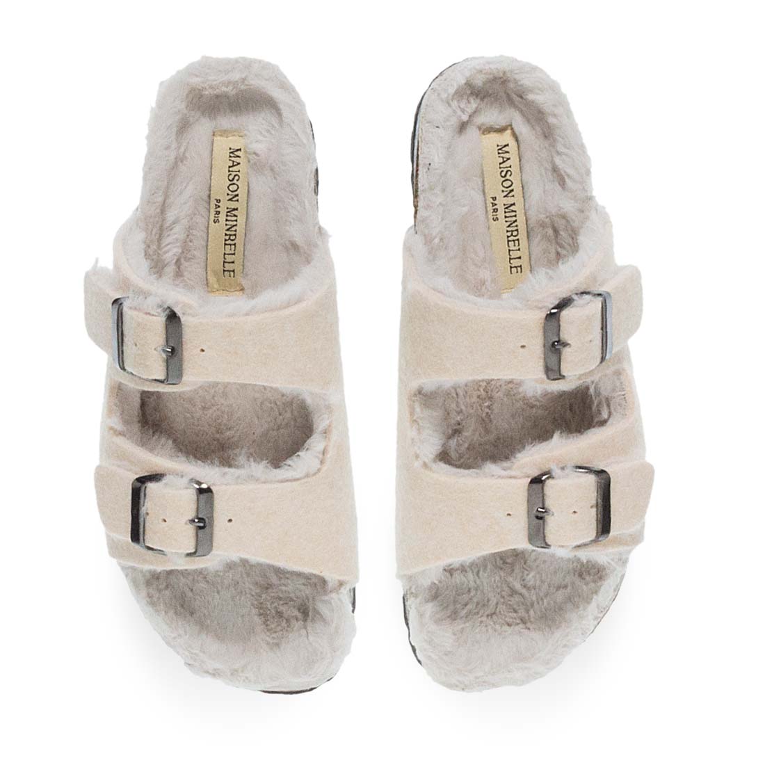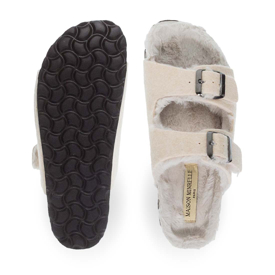 Ανοιχτές παντόφλες Maison Minrelle με συνθετική γούνα εσωτερικά. Κλείσιμο με δύο ρυθμιζόμενα λουράκια με αγκράφα. Ζεστές και μαλακές παντόφλες που θα σας ενθουσιάσουν. Μια άνετη και ανθεκτική επιλογή για να διατηρεί ξεκούραστα τα πόδια σας.