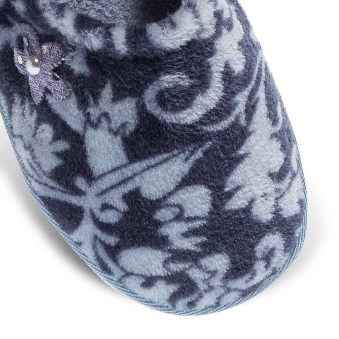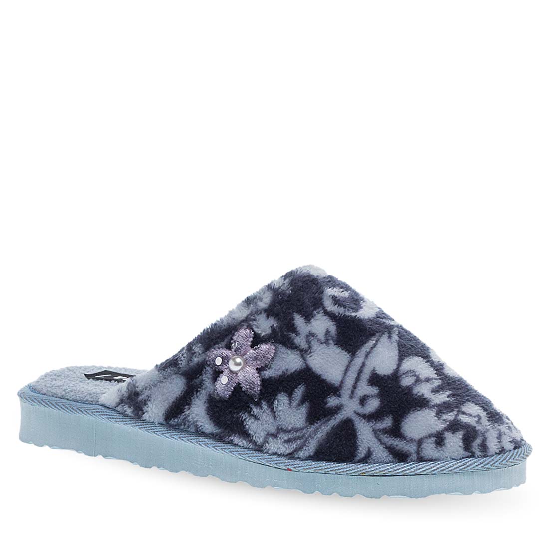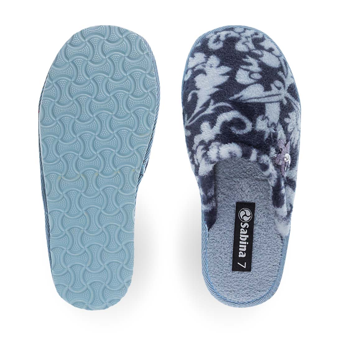 Αναπαυτικές βελουτέ παντόφλες σπιτιού από την εταιρεία Sabina με σχέδιο λαχούρι. Mαλακές παντόφλες, ιδανικές για να διατηρήσουν τα πόδια σας ζεστά και ξεκούραστα. Διαθέτουν διακοσμητική μαργαρίτα στο πλάι και πέρλα.