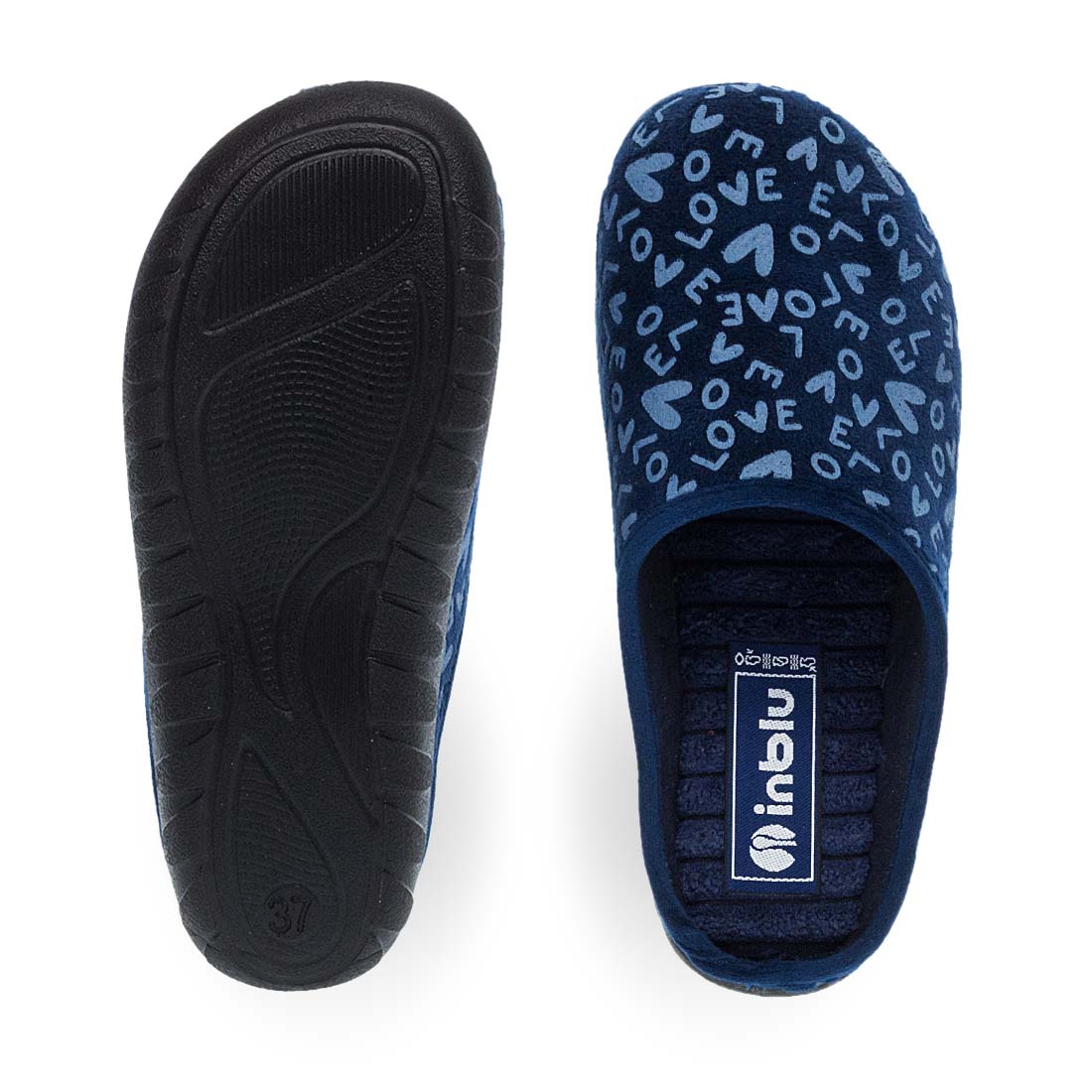 Γυναικείες παντόφλες σπιτιού από το brand Inblu. Γυναικείες παντόφλες Inblu από μαλακό ύφασμα με μοντέρνο τύπωμα “LOVE”. Ζεστές και ανάλαφρες, προσφέρουν μοναδική αίσθηση άνεσης τις κρύες μέρες.