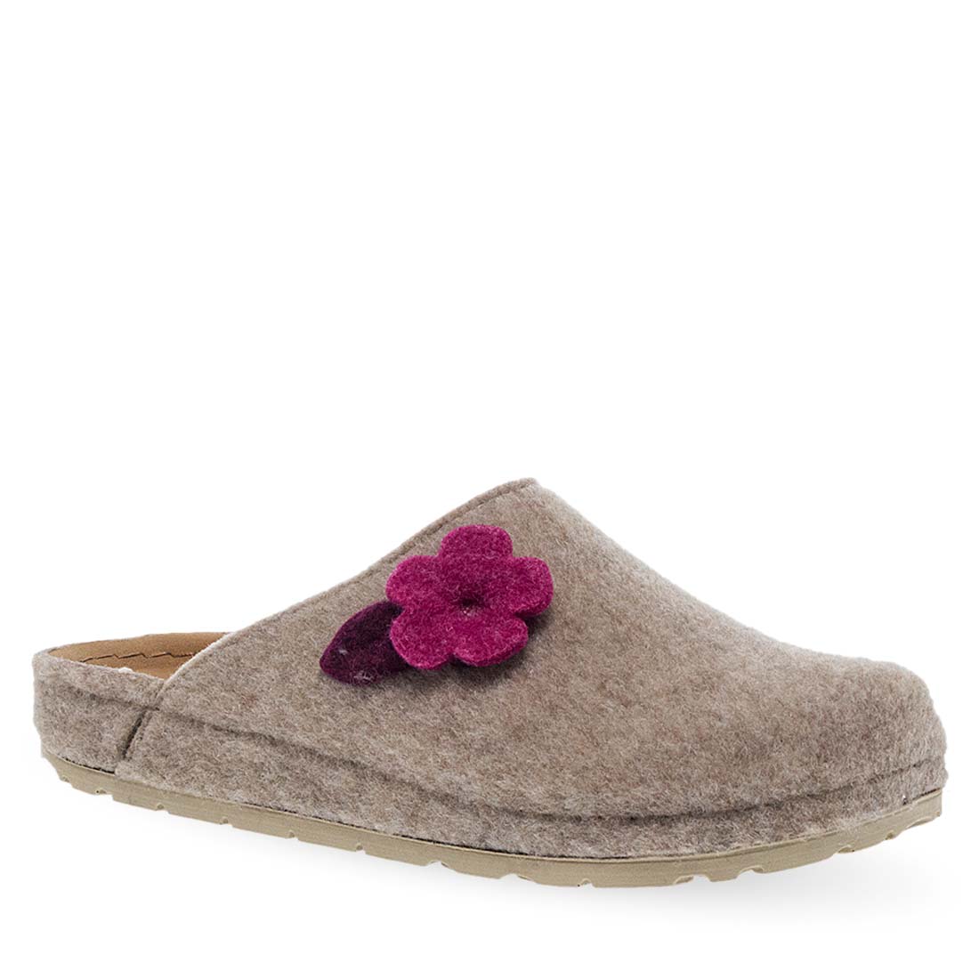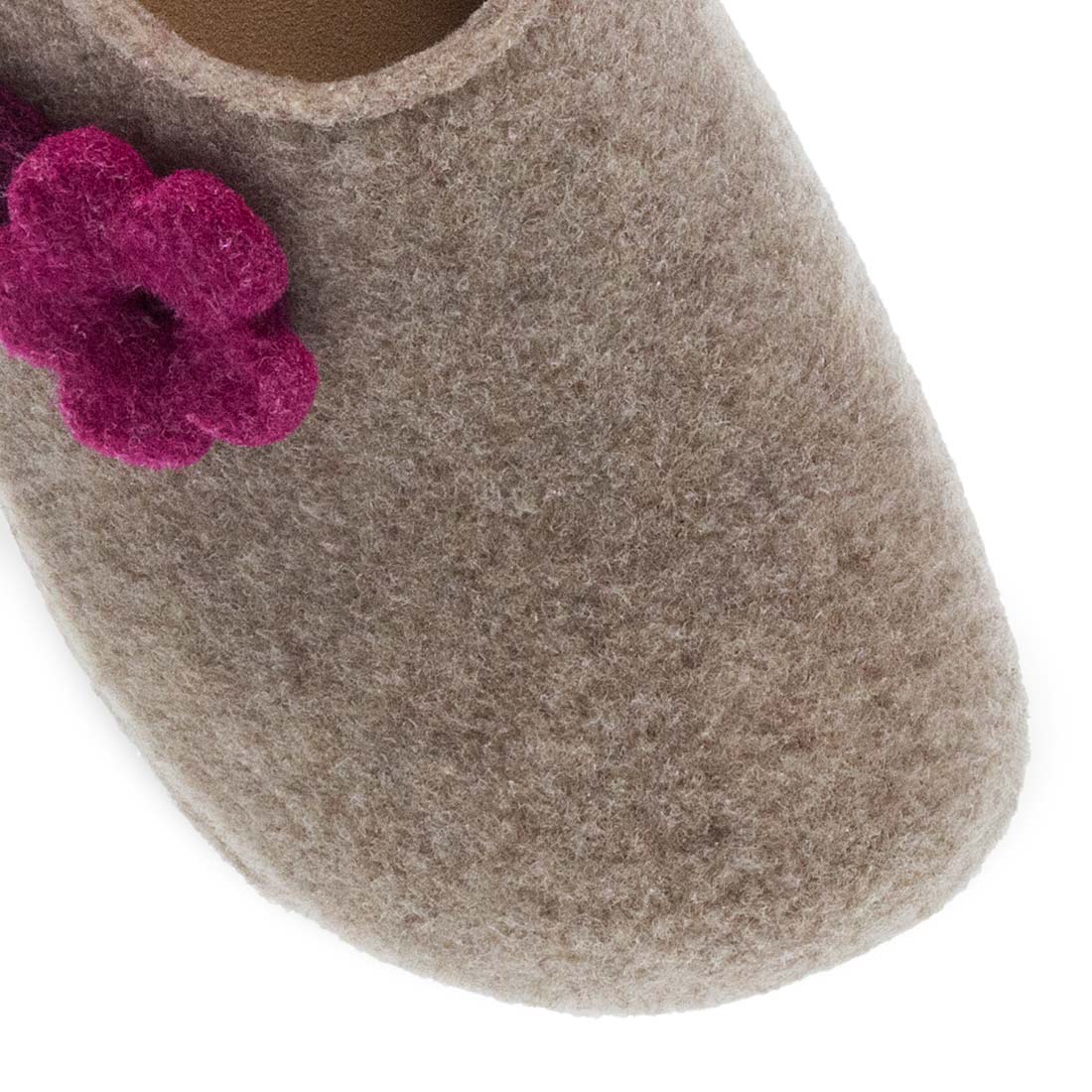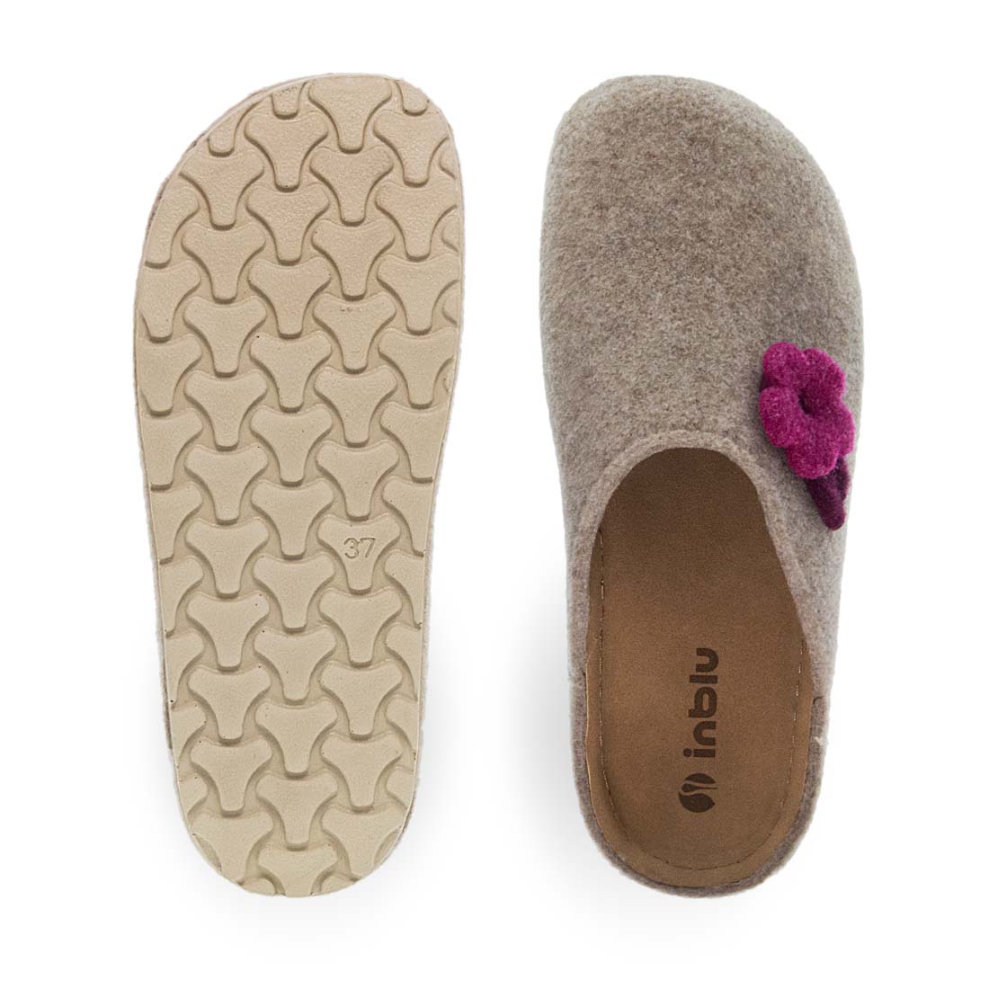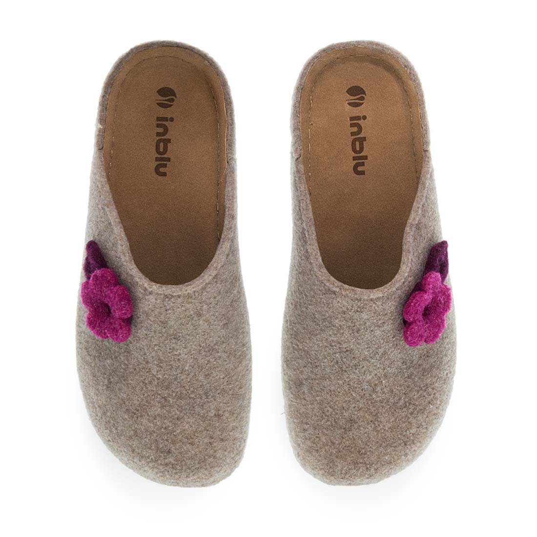 Γυναικείες παντόφλες σπιτιού από το brand Inblu. Ανατομικές γυναικείες παντόφλες Inblu με λουλούδι από τσόχα. Κατασκευασμένες από μαλακό ύφασμα, προσφέρουν φυσική άνεση και θηλυκή πινελιά.