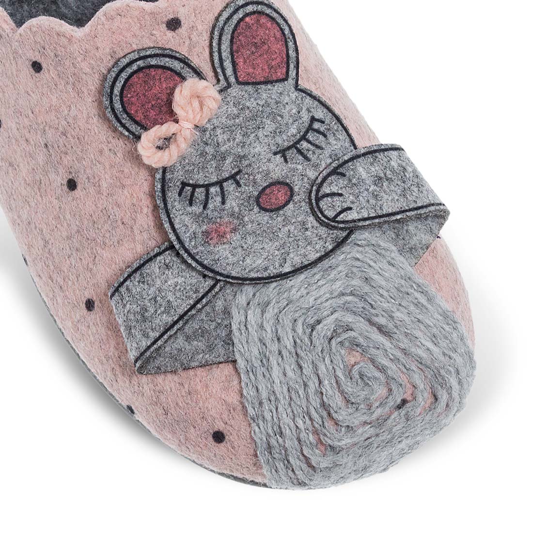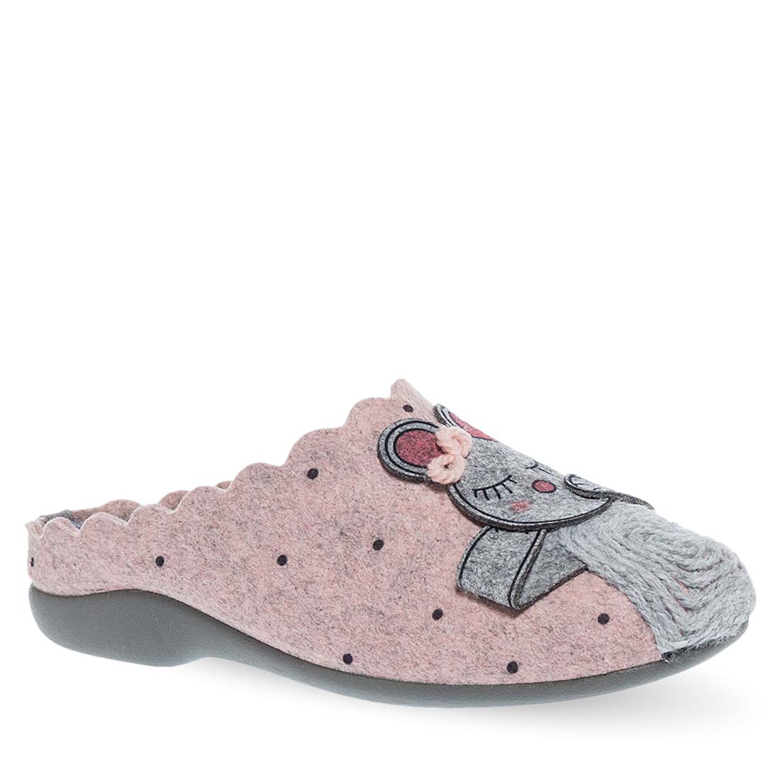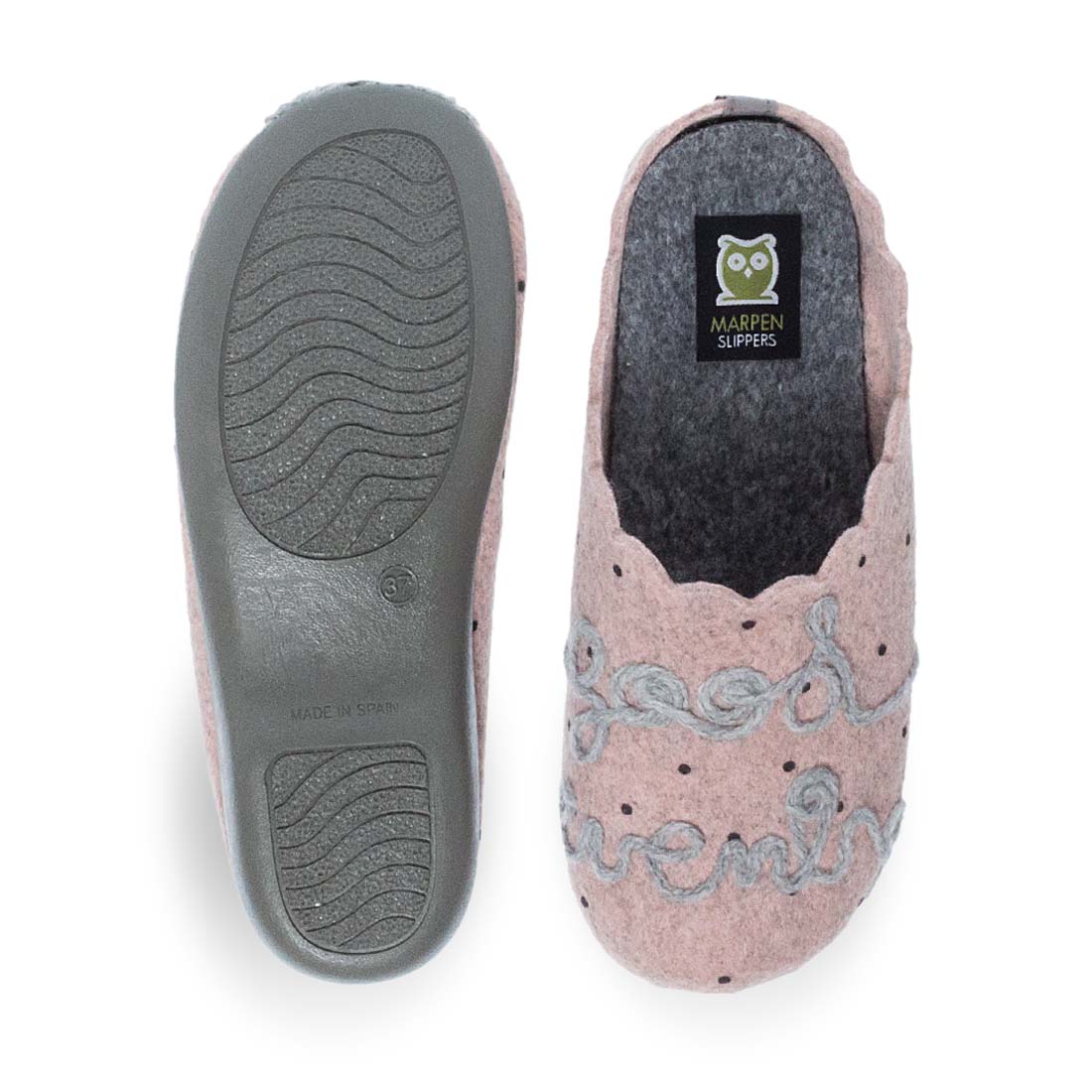Γυναικείες παντόφλες σπιτιού Marpen με μοντέρνο κεντημένο σχέδιο και λεπτομέρείες από πλεκτή κλωστή στο επάνω μέρος. Διαθέσιμες σε ροζ χρώμα. Αναπαυτικές, ζεστές και άνετες, η καλύτερη επιλογή για τον χειμώνα.