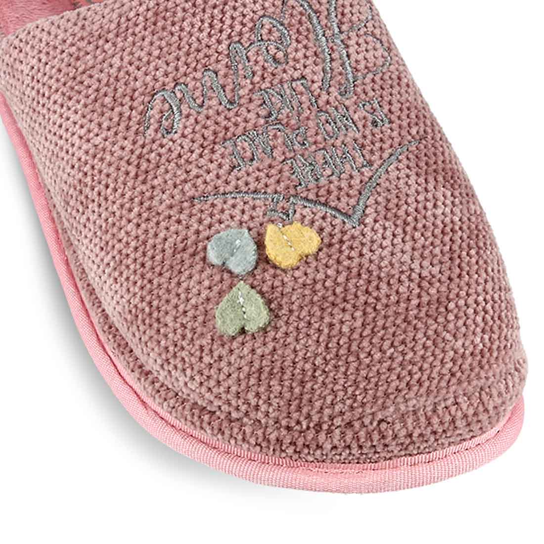 Δεν υπάρχει υπάρχει καλύτερο μέρος από το σπίτι σου γιατί εκεί είναι οι παντόφλες σου! Γυναικείες παντόφλες σπιτιού σενίλ με απλικέ καρδούλες και βελουτέ εσωτερικό πάτο. Διαθέτουν έυκαμπτη σόλα που δεν γλιστραέι. Είναι διαθέσιμες σε δυο χρώματα.