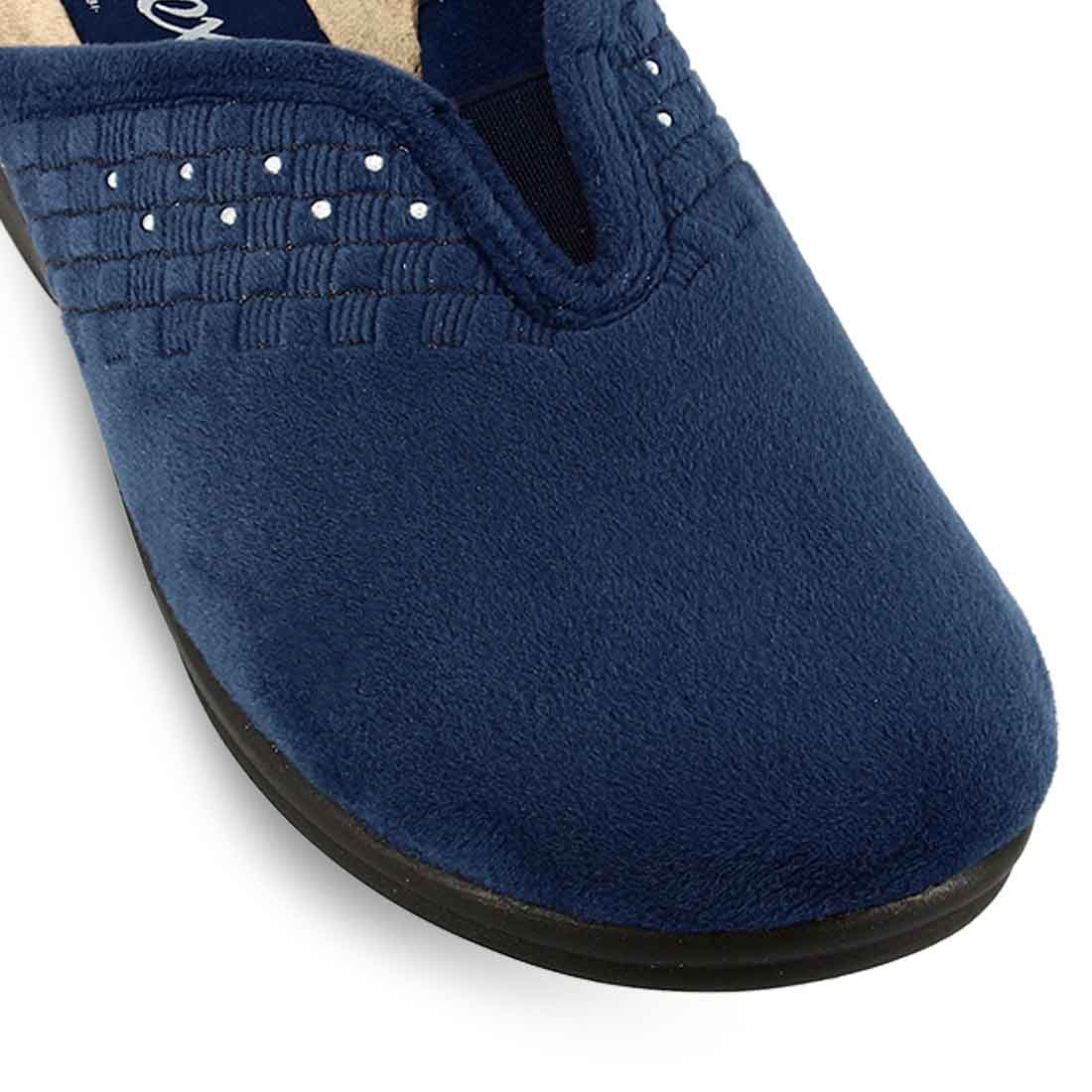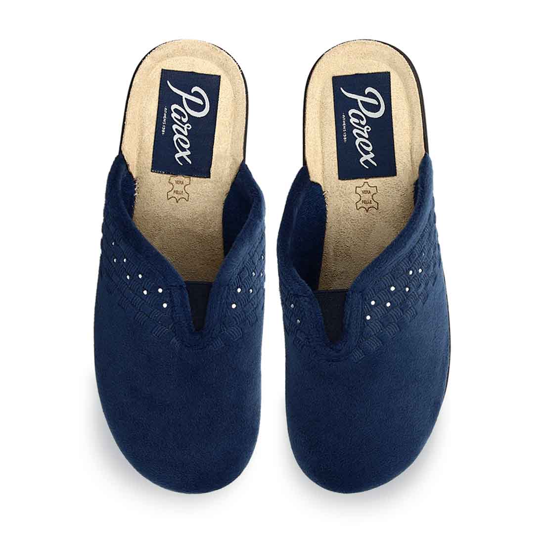 Πντόφλες σπιτιού με τακούνι.Υφασμάτινη επένδυση εξωτερικά και απίστευτα μαλακός πάτος εσωτερικά.Σχέδιο με λαστιχάκι στο κουτεπιέ για να ταιριάζει και σε πρησμένα πέλματα.Σόλα που δε γλιστράει.