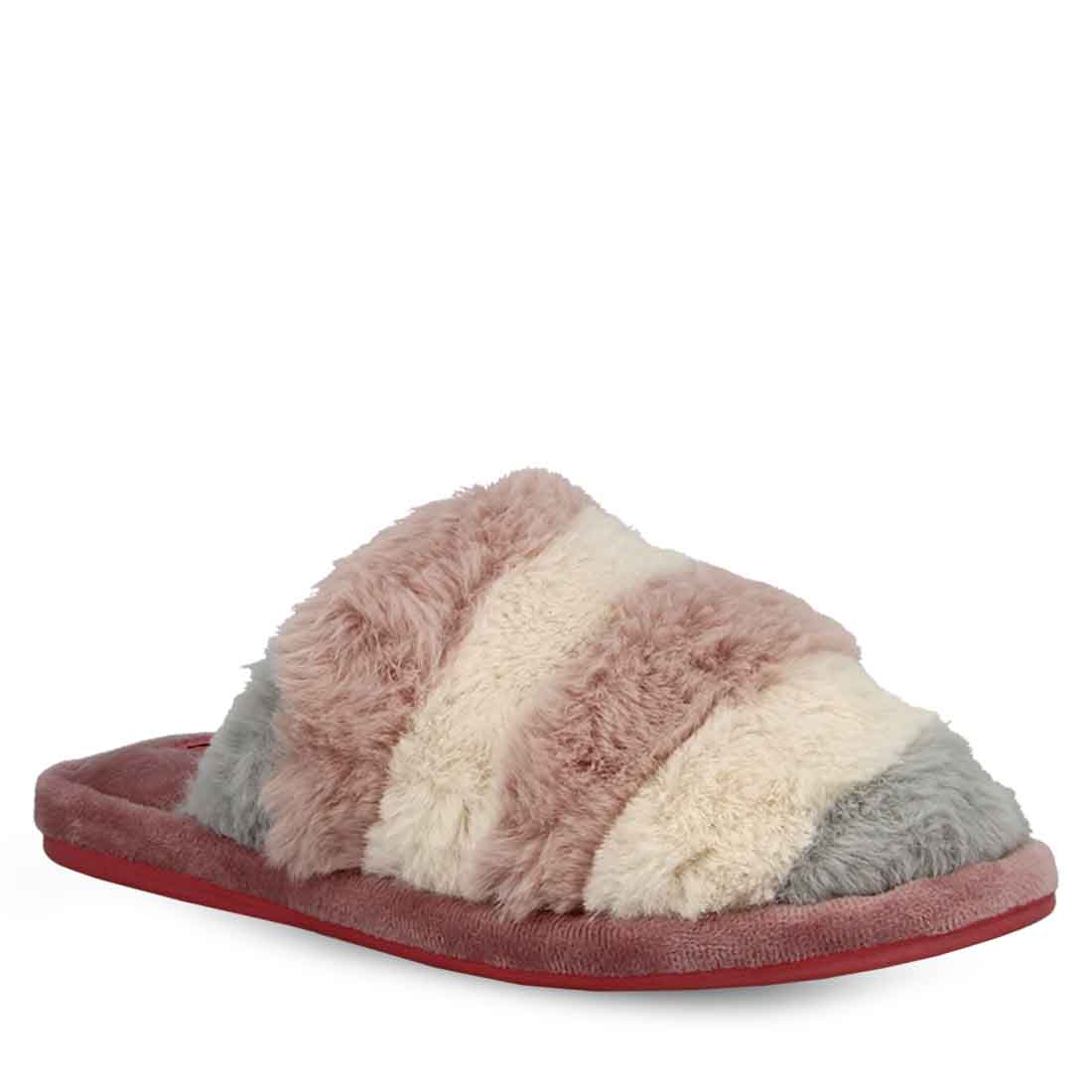 Μονοχρωμες fluffy παντόφλες σπιτιού από συνθετική γούνα σε συνδυασμό χρωμάτων.Μια ιδανική χειμερινή επιλογή με εξαιρετικά άνετο πάτο .