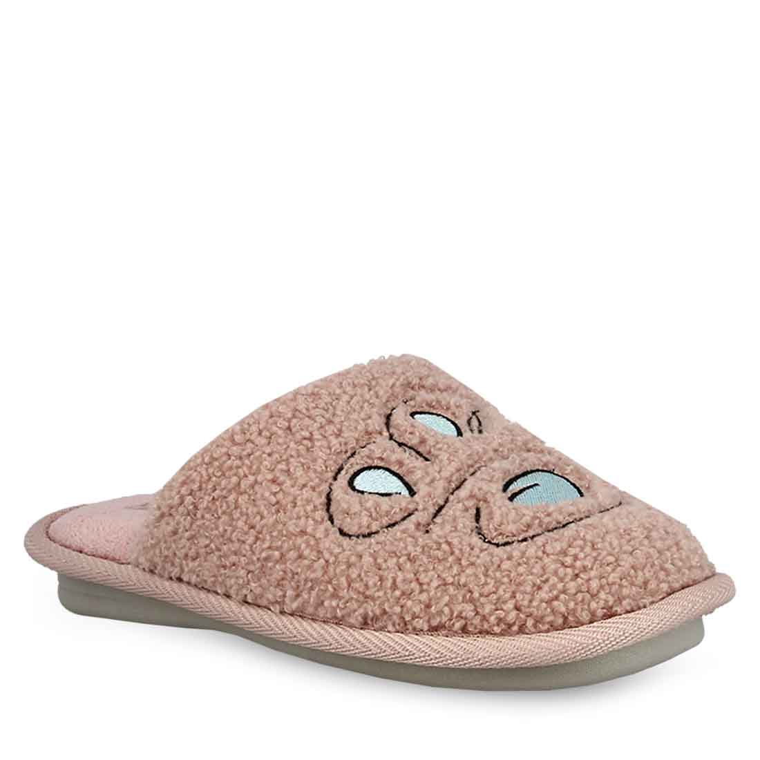 Γυναικείες παντόφλες σπιτιού με κεντημένο σχέδιο σκυλάκι στο πάνω μέρος, διαφορετικές στο αριστερό και στο δεξί πόδι.Διαθέτουν μαλακό,βελούδινο πάτο και ιδανική σόλα για σταθερά βήματα όλο τον χειμώνα. Διαθέσιμες σε γκρι και ροζ χρώμα.