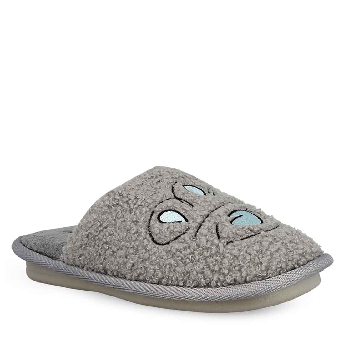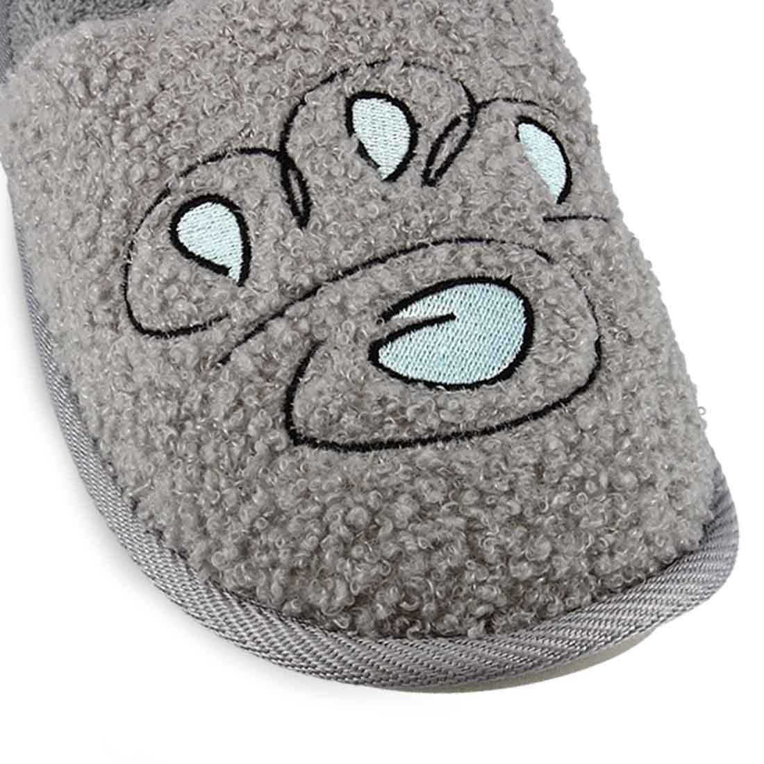Γυναικείες παντόφλες σπιτιού με κεντημένο σχέδιο σκυλάκι στο πάνω μέρος, διαφορετικές στο αριστερό και στο δεξί πόδι.Διαθέτουν μαλακό,βελούδινο πάτο και ιδανική σόλα για σταθερά βήματα όλο τον χειμώνα. Διαθέσιμες σε γκρι και ροζ χρώμα.
