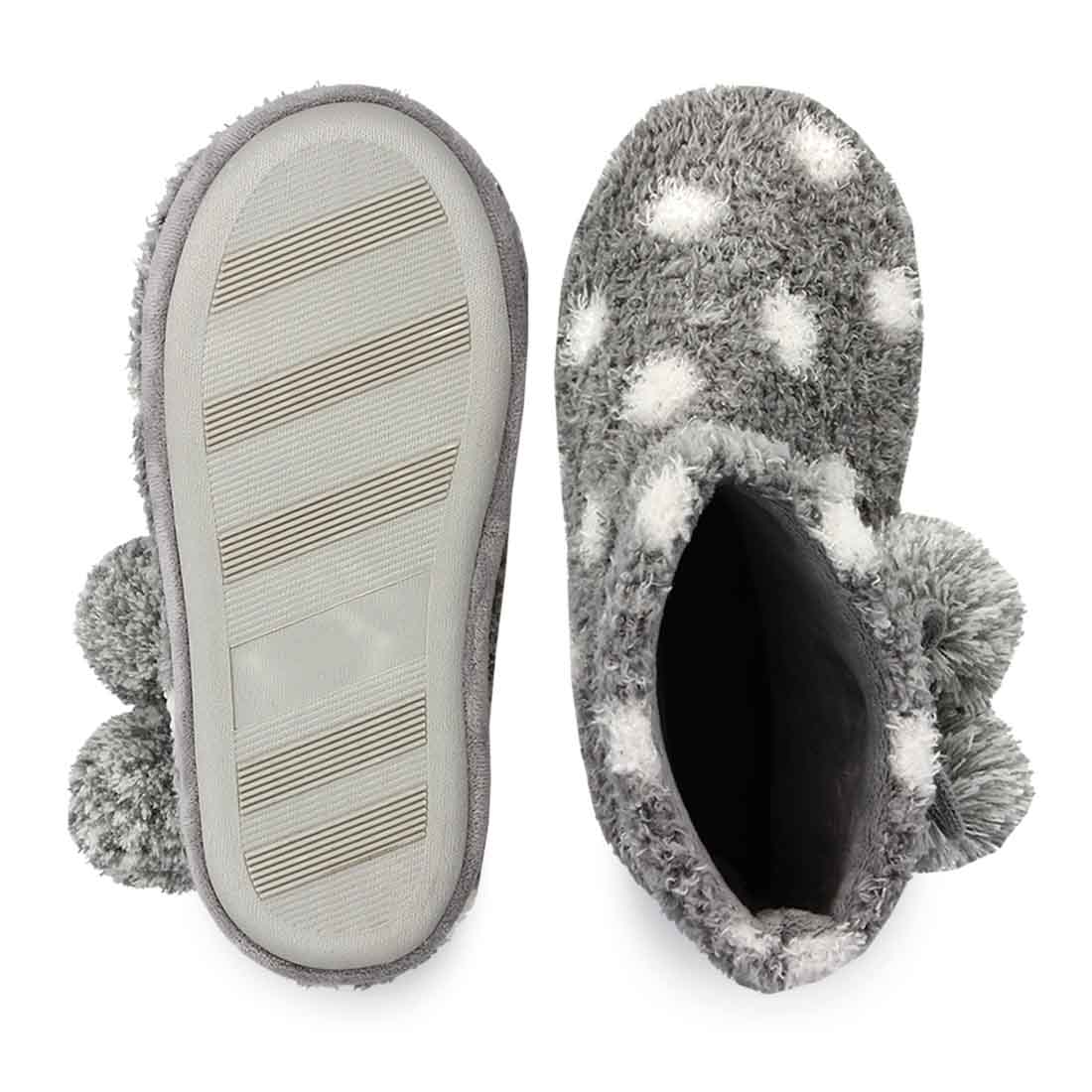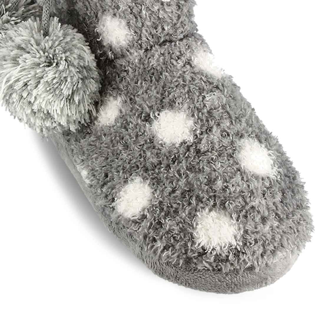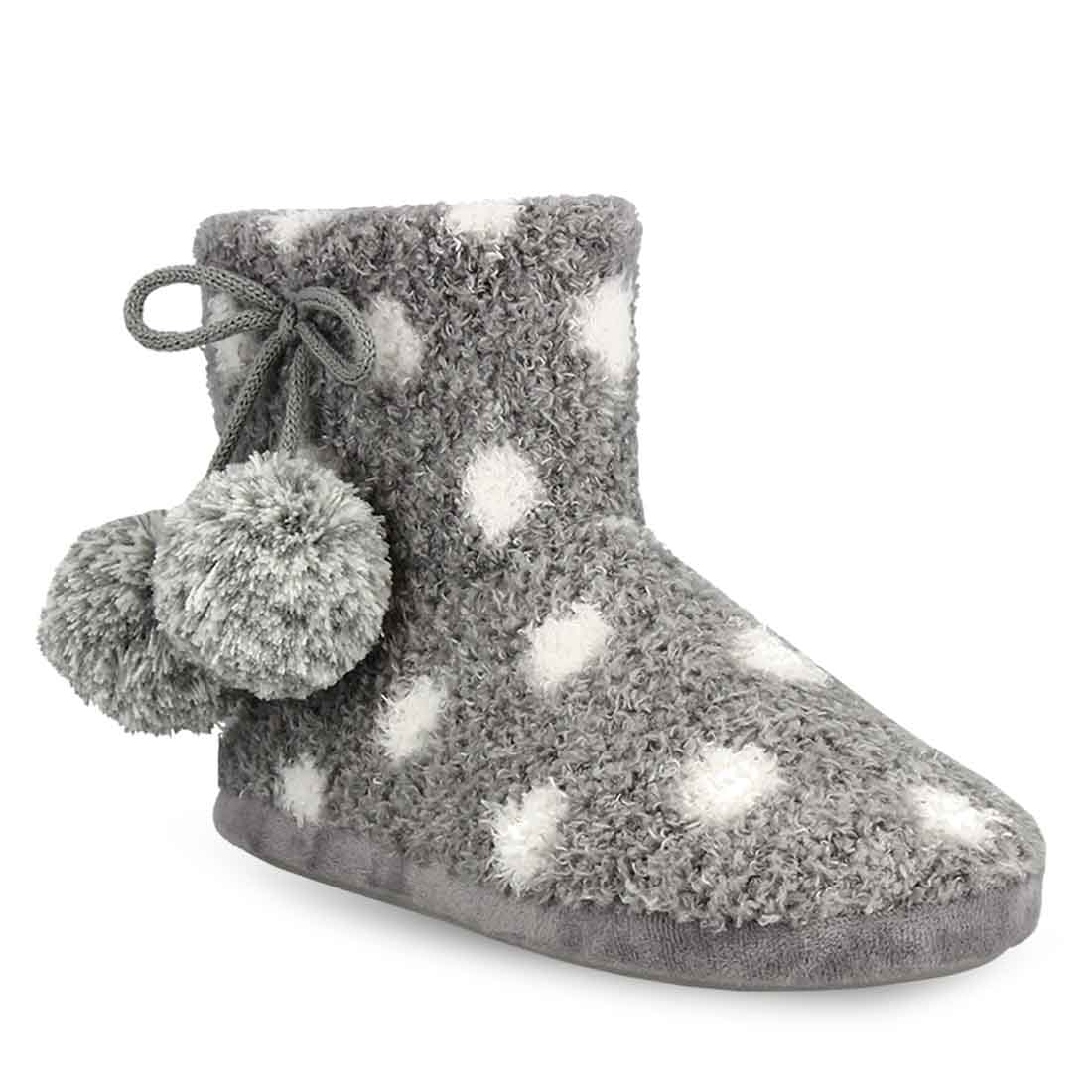 Γυναικείες παντόφλες στυλ μποτάκι με σχέδιο πουά σχέδιο και κορδόνια με pom pon. Διαθέτει υφασμάτινη επένδυση θα σας χαρίσει την άνεση και την ζεστασιά που θέλετε μέσα στο σπίτι. Δυνατότητα πλυσίματος στο πλυντήριο στους 30°C.