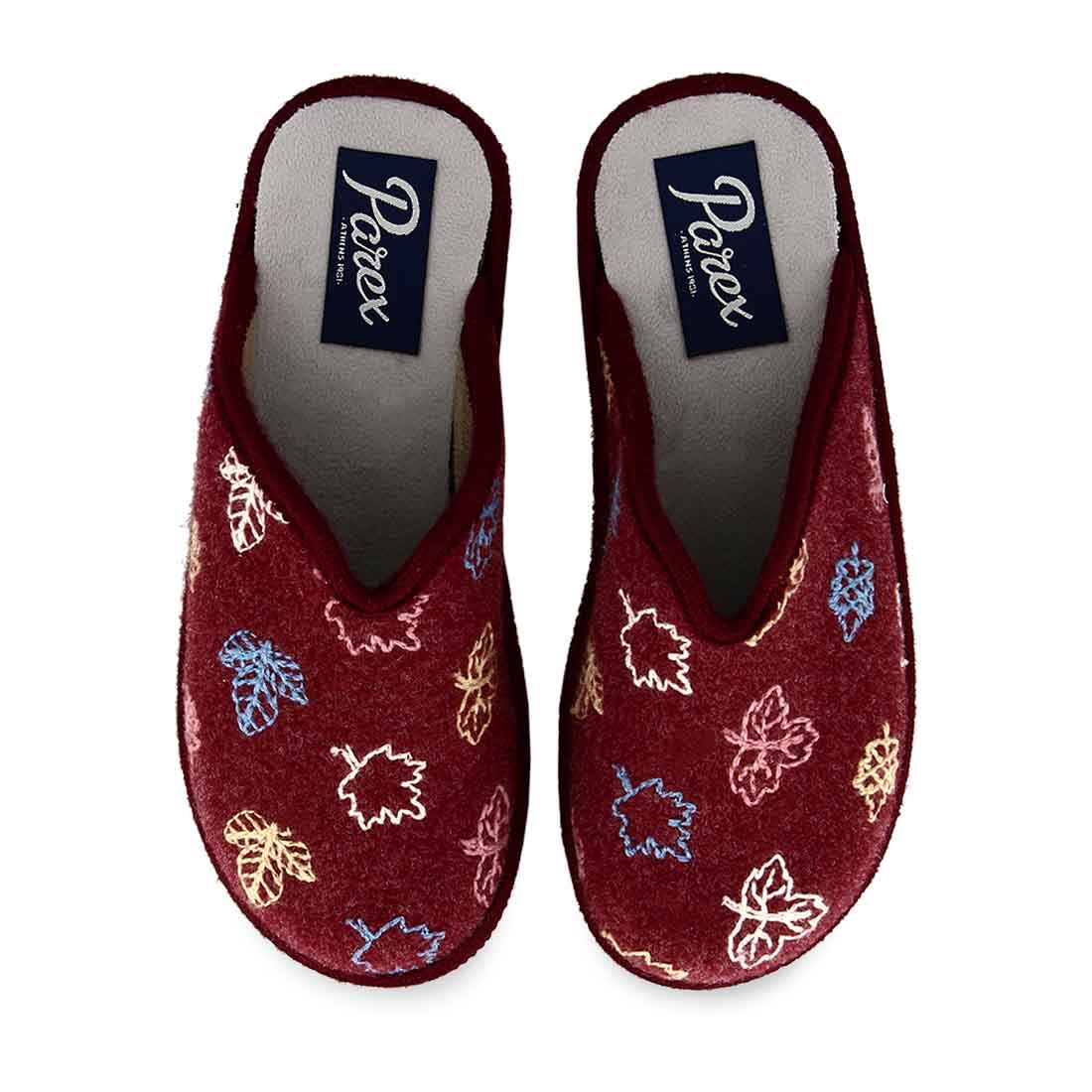 Γυναικείες παντόφλες που παραπέμπουν σε φθινόπωρο με κεντημένα χρωματιστά φύλλα στο πάνω μέρος. Ξεχωρίζουν για το αναπαυτικό ζεστό πάτημα,σόλα που δεν γλιστράει με χαμηλό τακούνι.