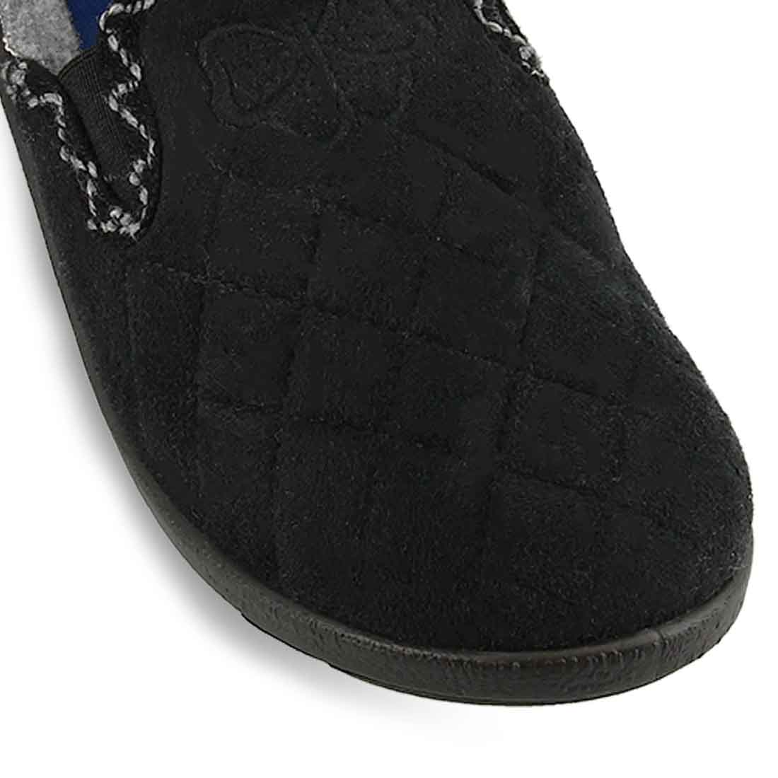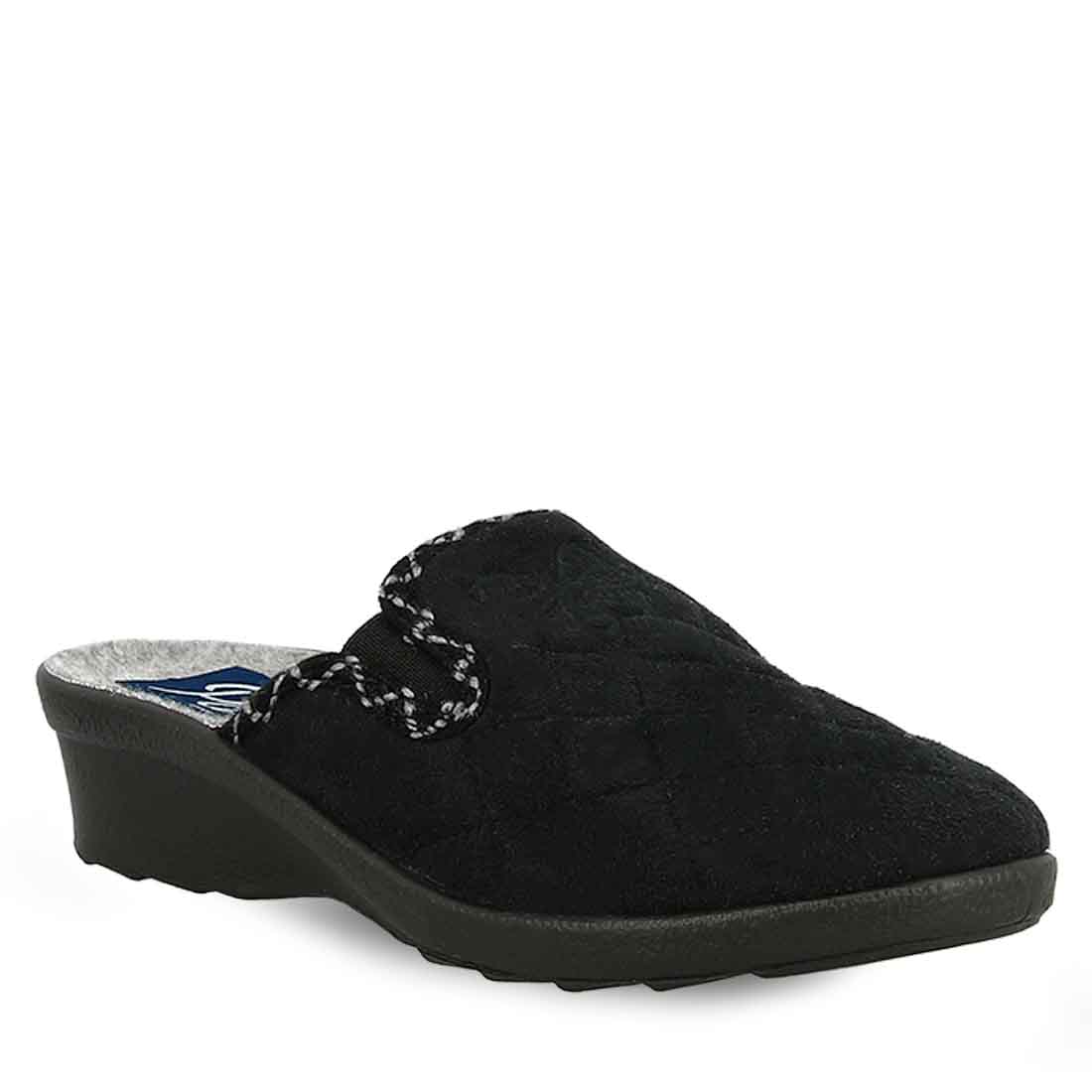 Διαχρονικές παντόφλες σπιτιού με βελούδινο εξωτερικό ύφασμα,διαθέσιμες σε μπλε μπορντώ και μαύρο χρώμα. Ξεχωρίζουν για το κομψό σχέδιο στο πάνω μέρος, ιδανικό τακούνι για τα κουρασμένα πόδια σας.