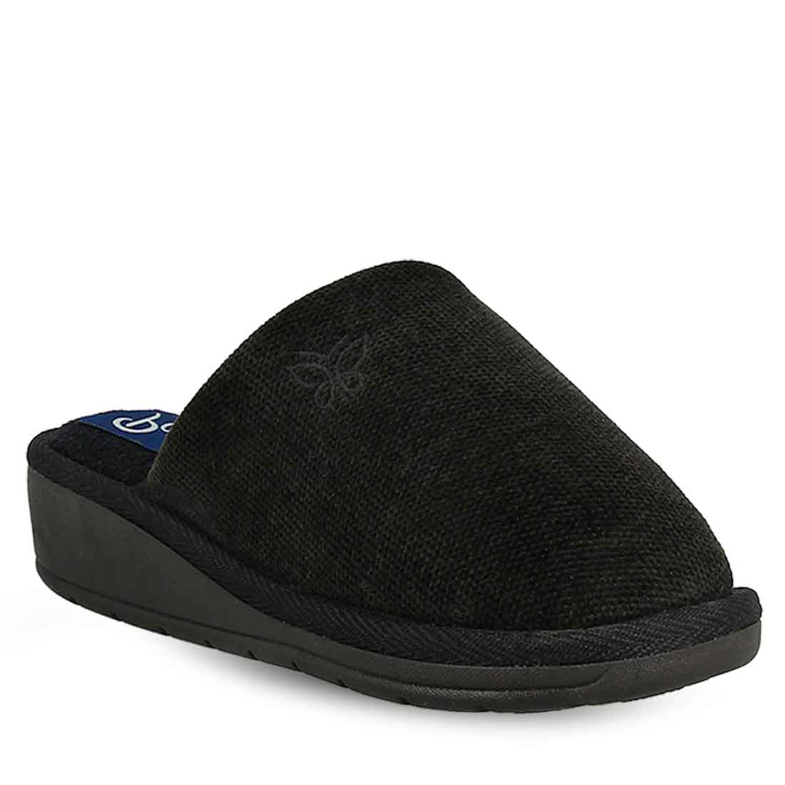Απόλαυσε ζεστά και άνετα βήματα όλη την ημέρα με αυτές τις χειμερινές γυναικείες παντόφλες σπιτιού. Μονόχρωμες σε μαύρο και μπλε χρώμα,με σχέδιο πεταλούδα στο πλάι. Διαθέτουν μαλακό,υφασμάτινο πάτο και τακούνι τύπου πλατφόρμα.