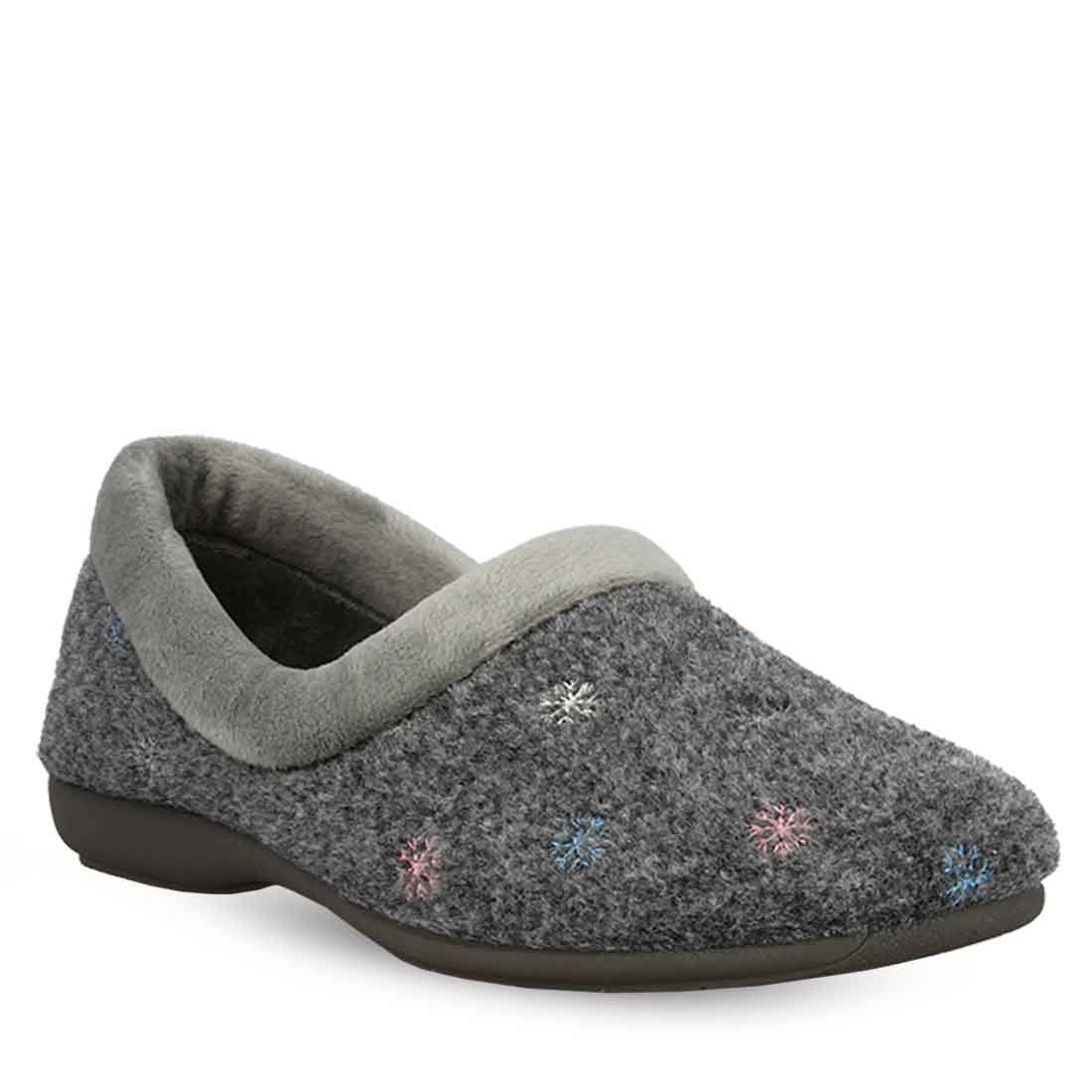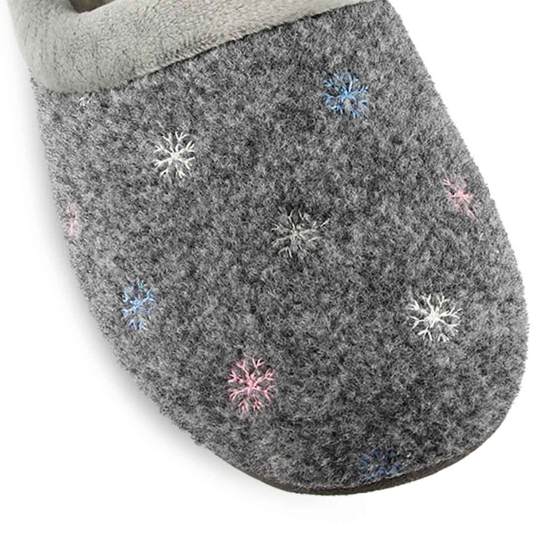 Ακόμα μια άνετη επιλογή για ζεστά βήματα μέσα στο σπίτι,με αυτές τις εντυπωσιακές κλειστές παντόφλες από ύφασμα-τσόχα με σχέδια χιονονιφάδες στο επάνω μέρος σε μπλε χρώμα. Διαθέτουν μαλακό πάτο και σόλα με χαμηλό τακούνι για σταθερό βάδισμα.