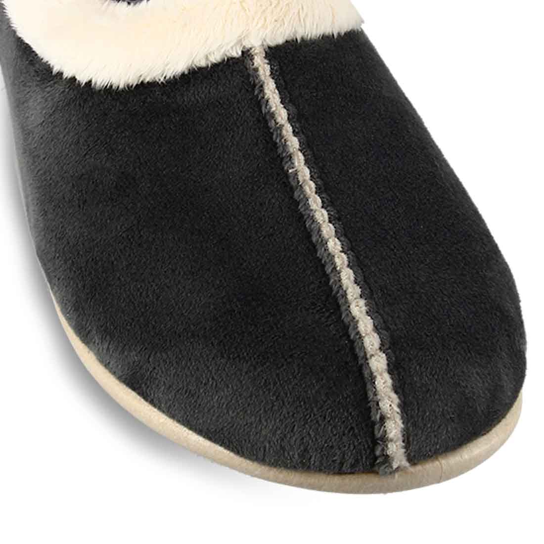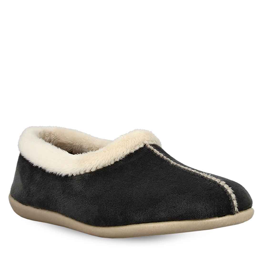 Κλασσικές γούνινες γυναικείες παντόφλες σπιτιού σε στυλ μποτάκι. Διαθέτουν μαλακό ύφασμα στο εξωτερικό με λεπτομέρεια συνθετικής γούνας και ζεστή συνθετική γούνα εσωτερικά. Ανθεκτική σόλα, διαθέσιμες σε γκρι και λιλά χρώμα.