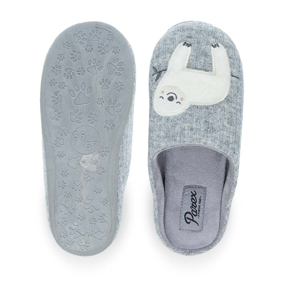 Γυναικείες παντόφλες σπιτιού από τη νέα συλλογή ''''The Cocooning Collecton'''' της εταιρείας Parex. Είναι σχεδιασμένες από μαλακό ύφασμα και κέντημα βραδύποδα στο πάνω μέρος. Διαθέτουν πολύ μαλακό και ζεστό πάτημα. Ένα μοντέρνο σχέδιο για cozy εμφανίσεις στο σπίτι. Δυνατότητα πλυσίματος στο πλυντήριο στους 30°.