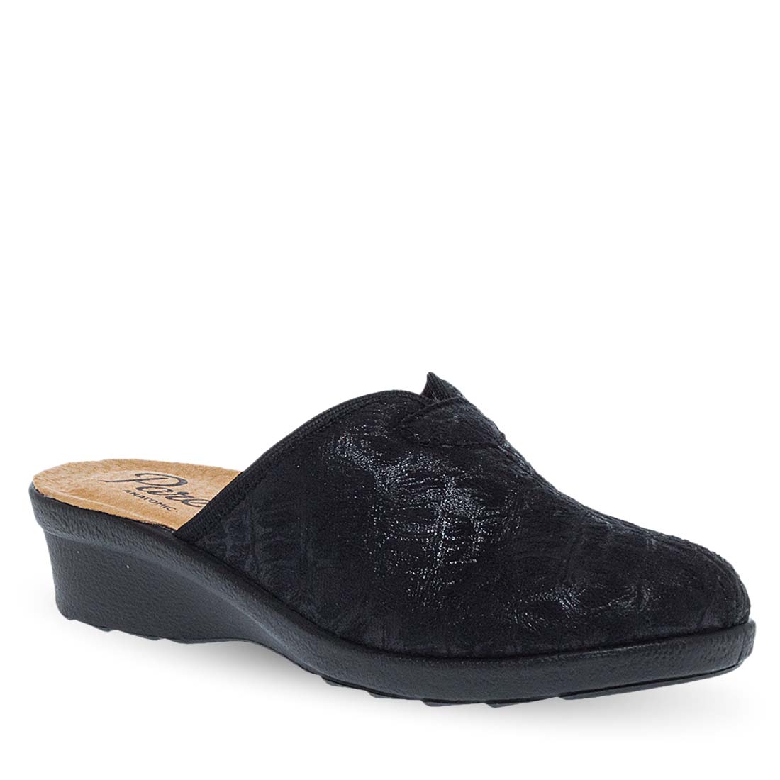 Διαχρονικές παντόφλες σπιτιού από ύφασμα,διαθέσιμες σε γκρι και μαύρο χρώμα. Ξεχωρίζουν για το κομψό σχέδιο στο πάνω μέρος, ιδανικό τακούνι για τα κουρασμένα πόδια σας.