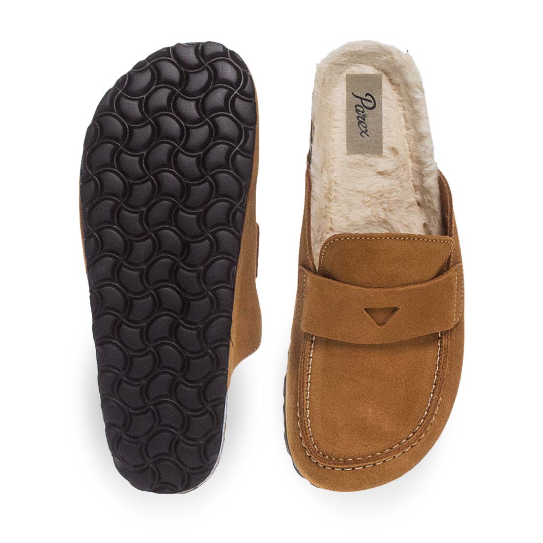 Δερμάτινες κάμελ παντόφλες σπιτιού με ιδιαίτερο σχέδιασμό. Έχουν καστόρινη υφή εξωτερικά. Χειμερινές παντόφλες σπιτιού τύπου σαμπό,με μαλακό αναπαυτικό πάτο για ξεκούραση και άνεση στο σπίτι.