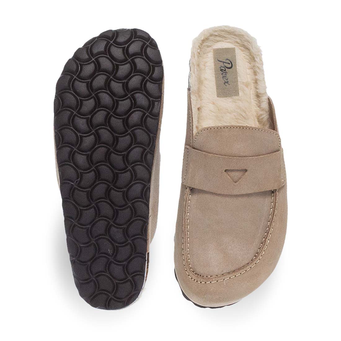 Γυναικείες παντόφλες σπιτιού από δέρμα , σε μπεζ χρώμα. Έχουν καστόρινη υφή εξωτερικά. Χειμερινές παντόφλες σπιτιού τύπου σαμπό,με μαλακό αναπαυτικό πάτο για ξεκούραση και άνεση στο σπίτι. Πρωτότυπες με ζεστή συνθτική γούνα εσωτερικά και αναπαυτικές που λατρέψετε.