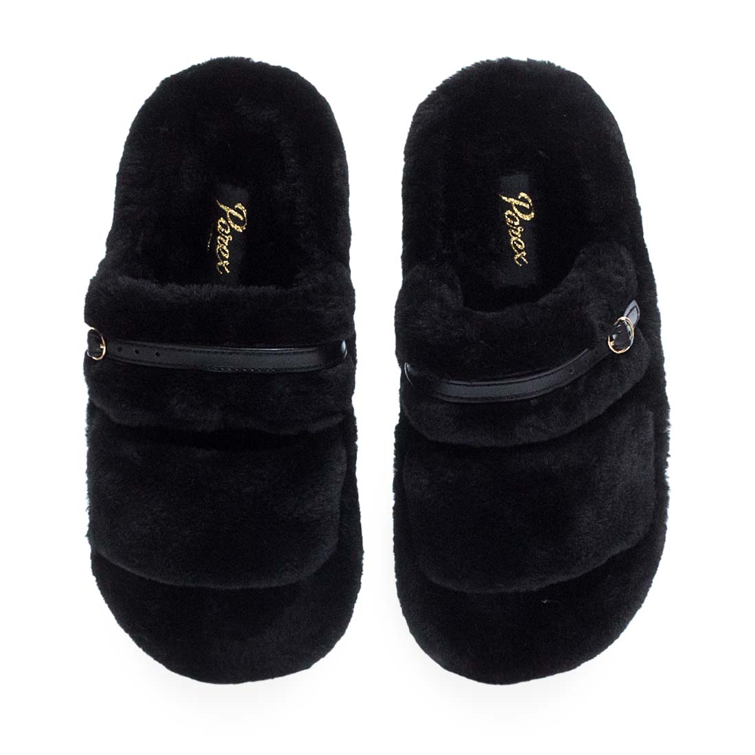 Εντυπωσιακές παντόφλες σπιτιού σε ανοιχτό σχέδιο κατασκευασμένες από μαλακό και ζεστό ύφασμα. Διαθέτουν διακοσμητικό λεπτο λουράκι με αγκράφα στο επάνω μέρος. Απολάυστε άνεση και στιλ με αυτό το υπέροχο ζευγάρι γυναικείες παντόφλες σπιτιού.