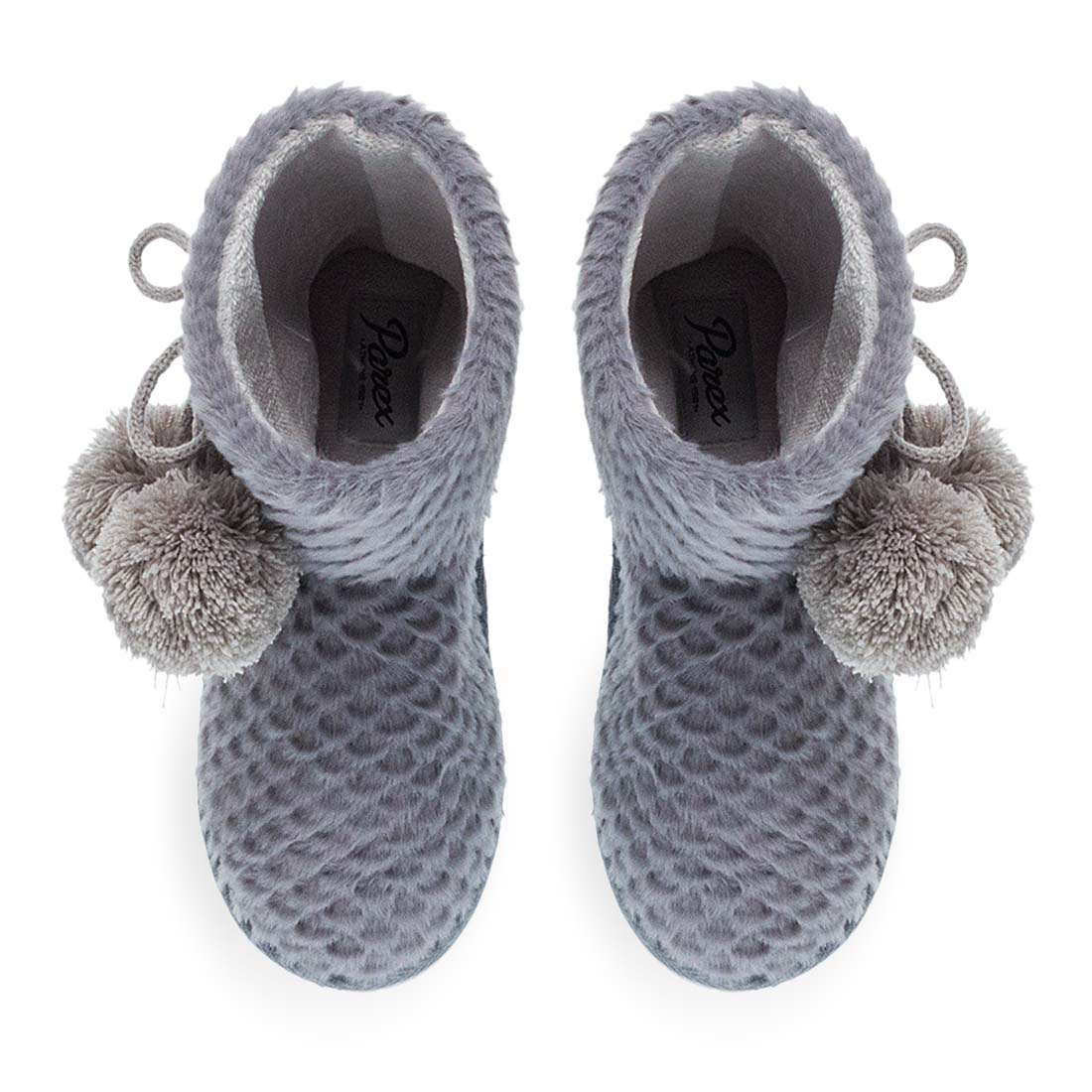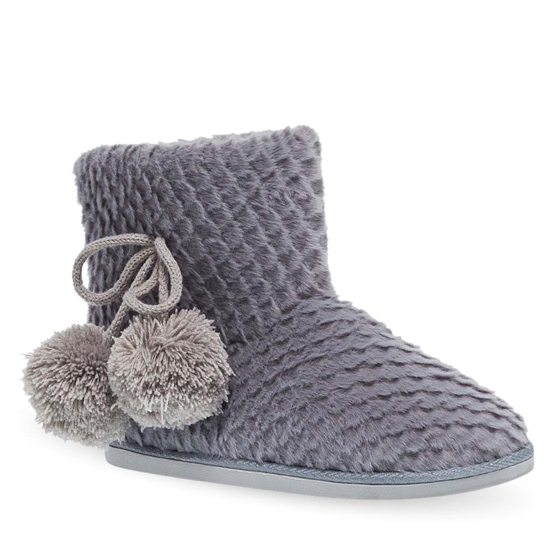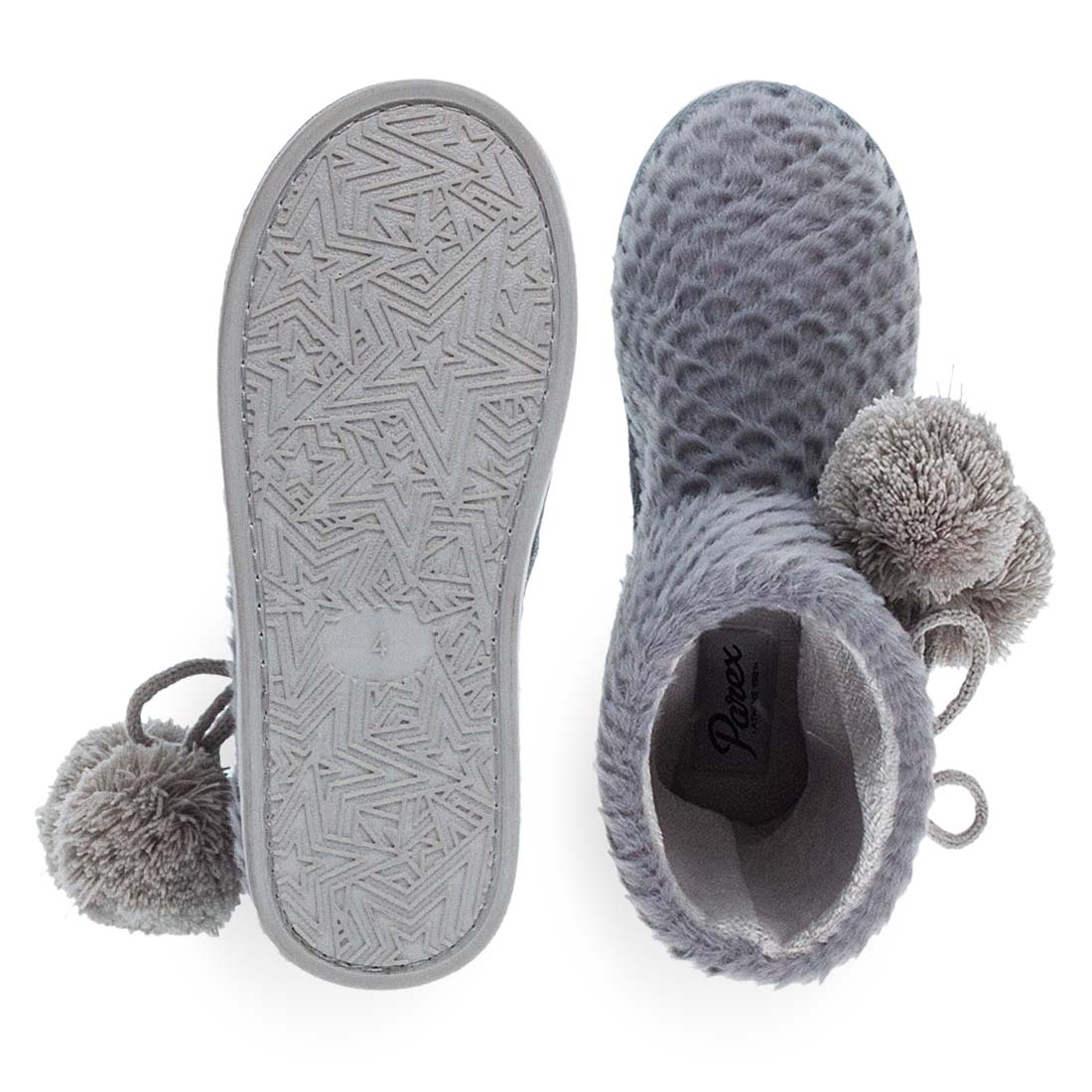 Γυναικείες παντόφλες σπιτιού Parex, σε στυλ μποτάκι με κορδόνι και pom pon . Διαθέτουν απαλό και ζεστό ύφασμα για ξεκούραστα βήματα. Χνουδωτές και ζεστές που θα λατρέψετε!