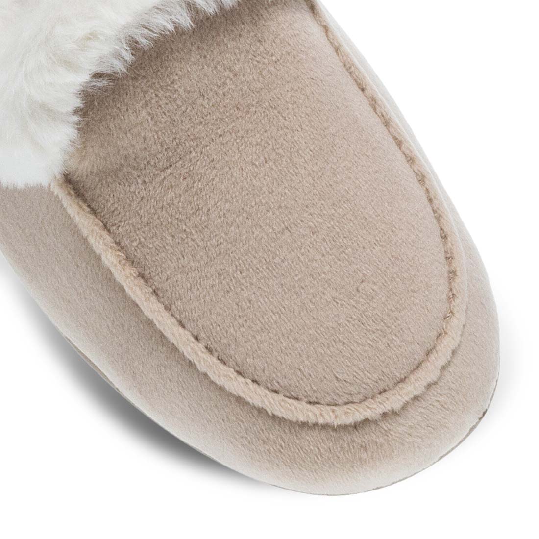 Κλειστές γυναικείες παντόφλες σπιτιού με λεπτομέρείες από συνθετική γούνα. Διαθέτουν μαλακό ύφασμα εξαιρετικά ζεστό και απαλό. Ανθεκτική σόλα, διαθέσιμες σε τρία χρώματα για να επιλέξετε από που σας ταιριάζει.