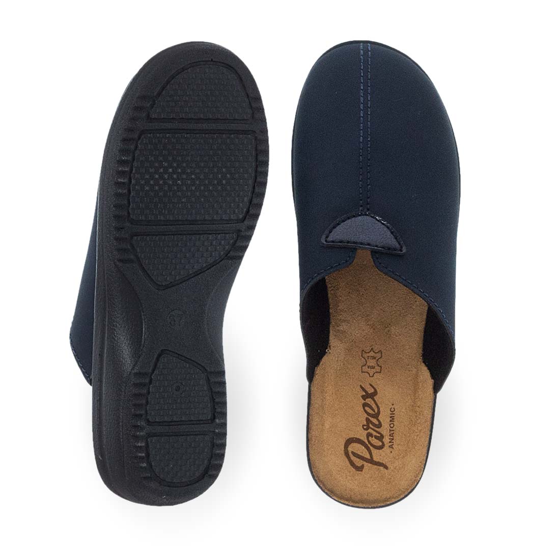 Γυναικείες παντόφλες σπιτιού Parex από συνθετικό δέρμα άριστης ποιότητας. Ο εσωτερικός πάτος είναι ιδανικός για να ξεκουράσει τα πόδια σας. Παντόφλες σπιτιού με σταθερή εξωτερική σόλα μεσσαίου μεγέθους.