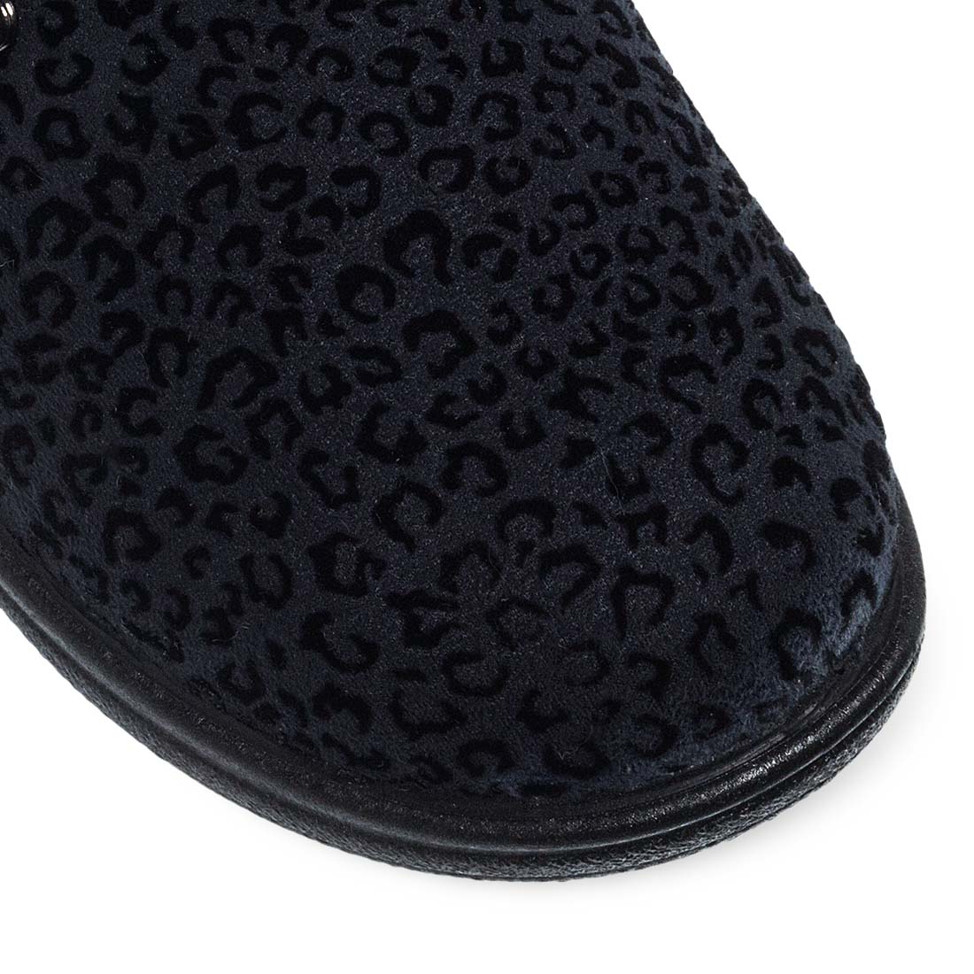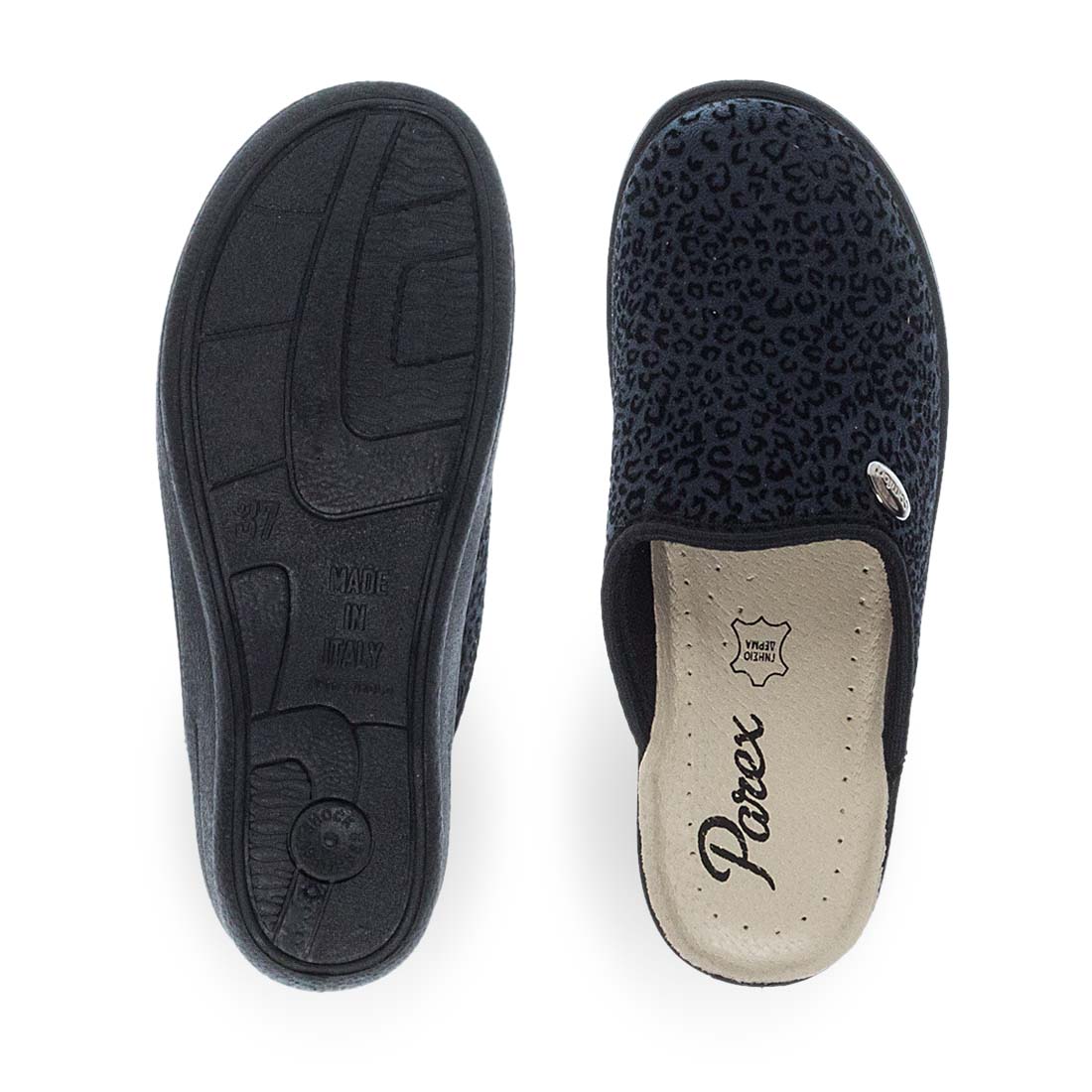 Γυναικείες παντόφλες σπιτιού. Φρόντισε να είσαι in fashion με αυτές τις βελουτέ παντόφλες από την Parex. Ξεχωρίζουν για το λεπάρ σχέδιο στο πάνω μέρος,διαθέσιμες σε μαύρο,μπλε,μπορντώ και γκρι χρώμα . Διαθέτουν μαλακό πέλμα,εσωτερική επένδυση από μαλακό ύφασμα. και αντιολισθητική σόλα τύπου πλατφόρμα.