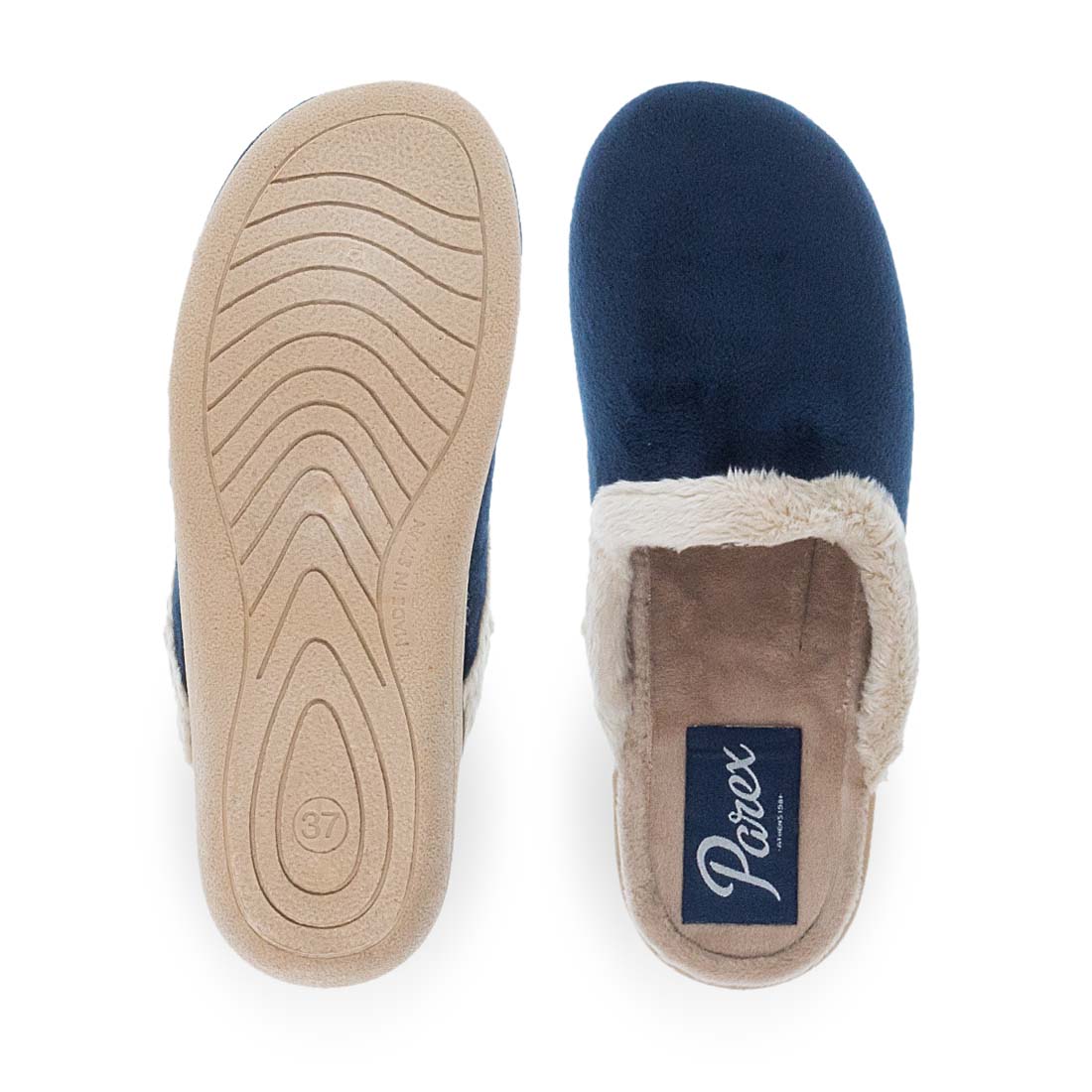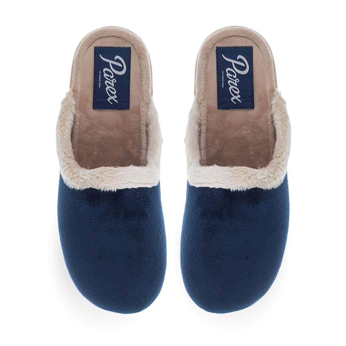 Γυναικείες παντόφλες σπιτιού Parex. Αυτό τον χειμώνα για ζεστά βήματα επιλέξτε αυτές τις γυναικείες παντόφλες από την Parex σε μοντέρνο σχέδιο από βελούδινο ύφασμα εξωτερικά και απαλή επένδυση από συνθετική γούνα. Αναπαυτικό πάτημα και σταθερή σόλα. Γυναικείες παντόφλες σπιτιού διαθέσιμες σε μπλε και μπορντώ χρώμα.