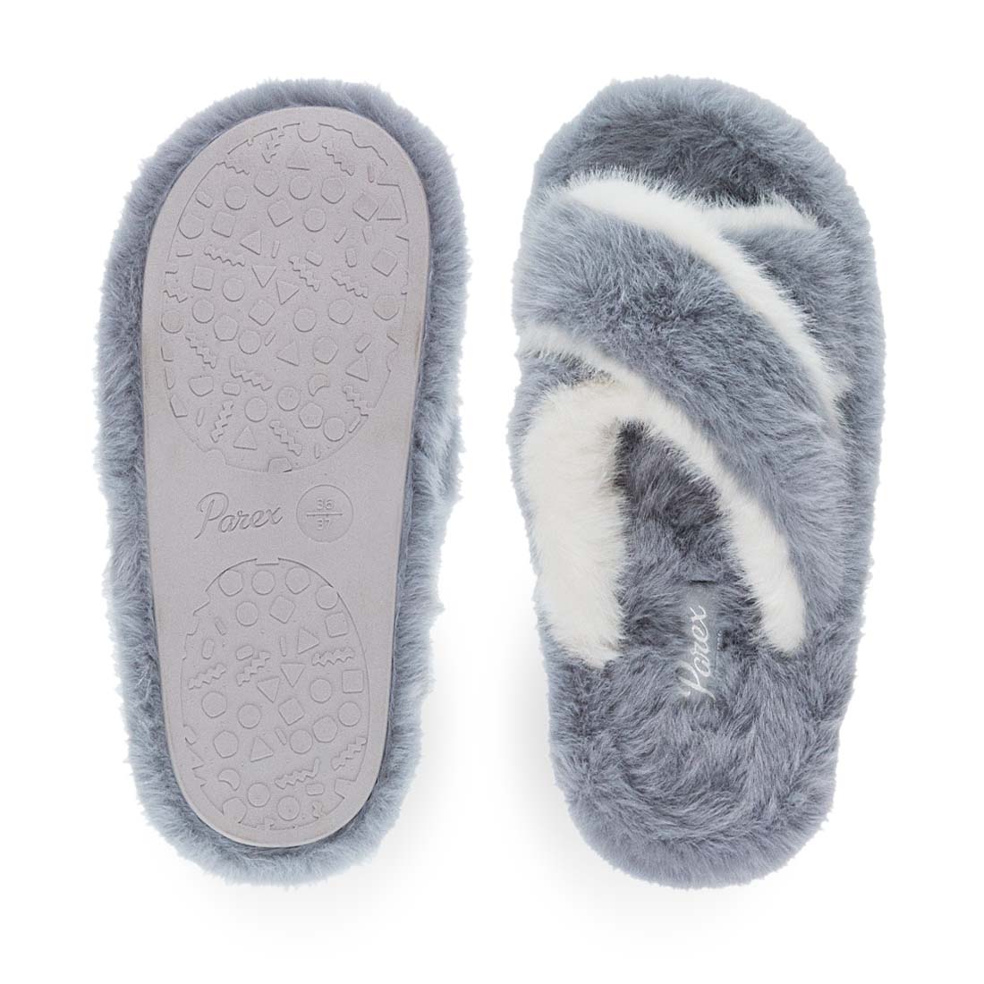 Γυναικείες παντόφλες σπιτιού Parex. Γυναικείες fuzzy παντόφλες Parex με χιαστί σχέδιο. Ελαφριές, άνετες και στιλάτες για τον χειμώνα.