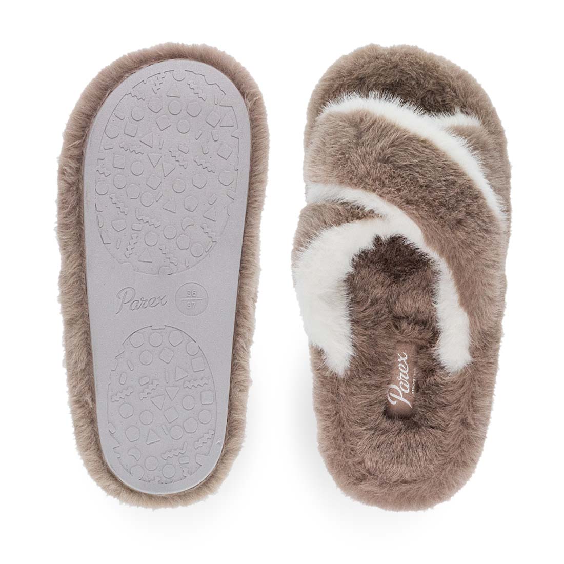 Γυναικείες παντόφλες σπιτιού Parex. Γυναικείες fuzzy παντόφλες Parex με χιαστί σχέδιο. Ελαφριές, άνετες και στιλάτες για τον χειμώνα.