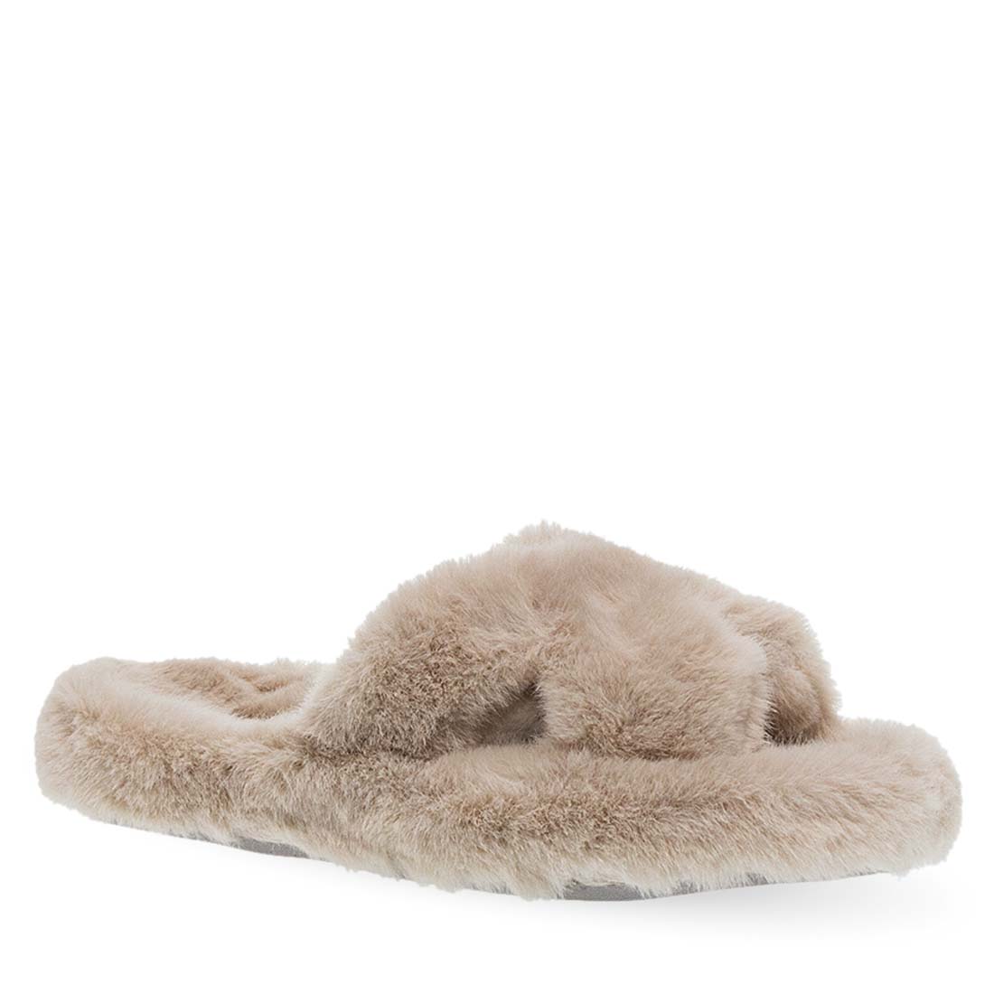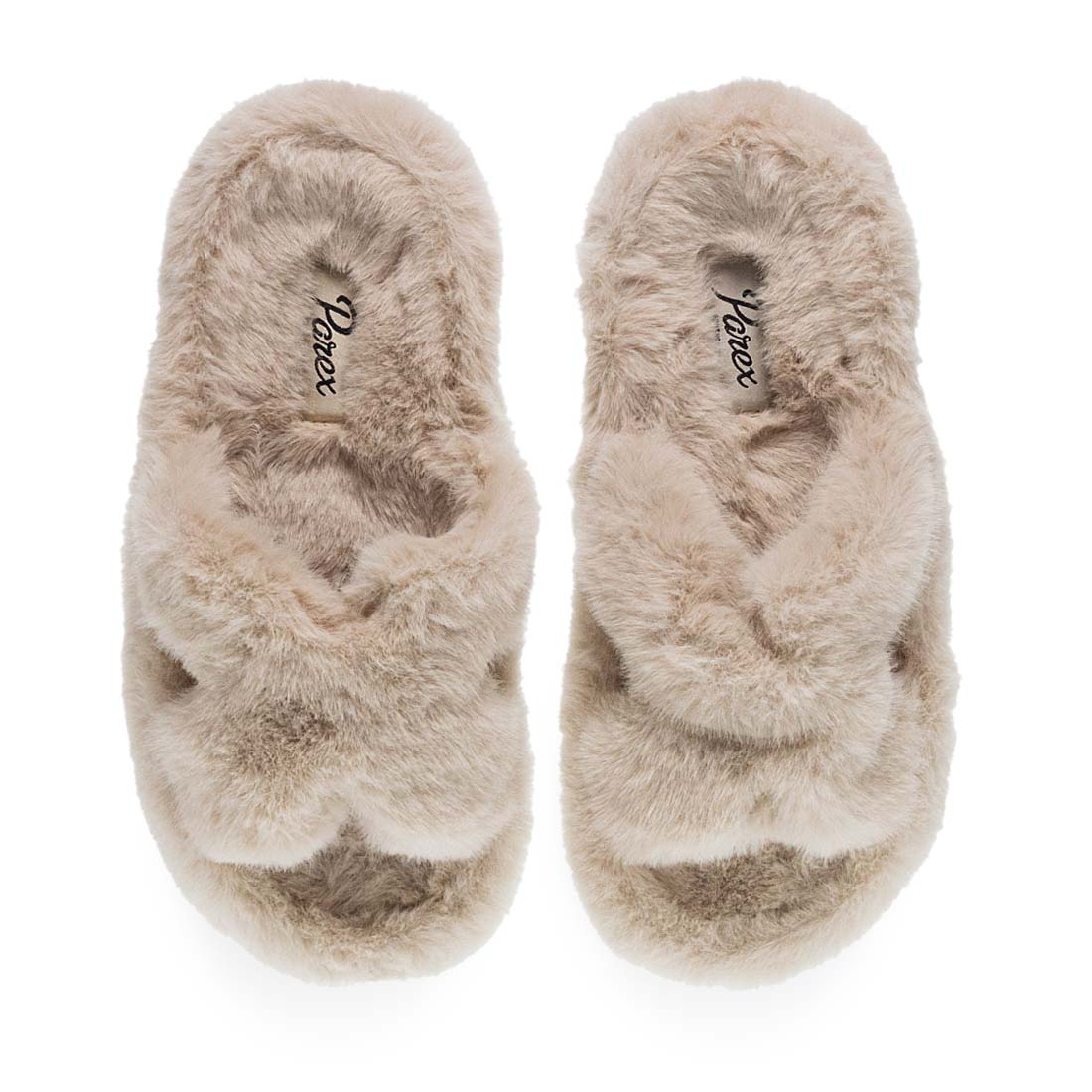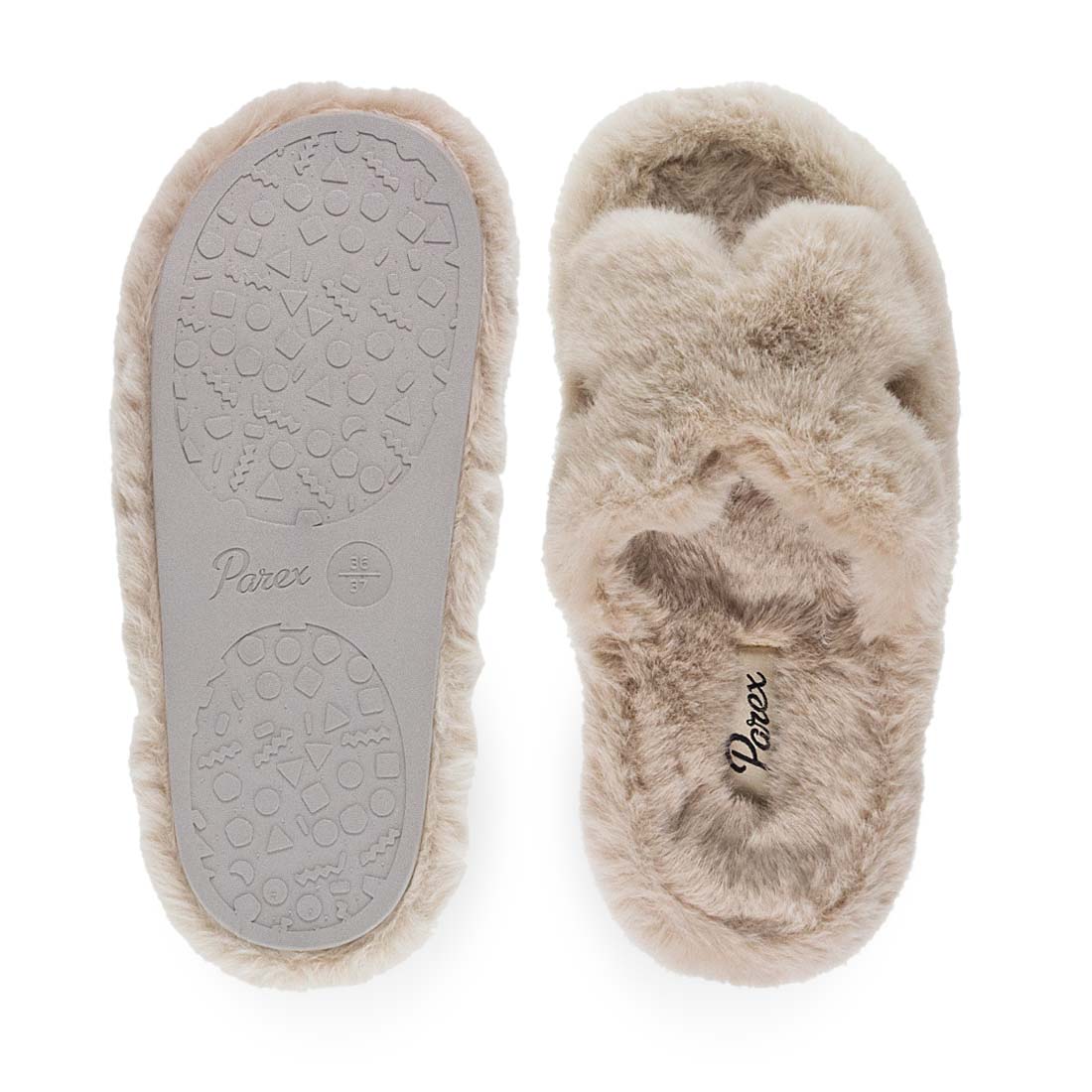 Γυναικείες παντόφλες σπιτιού Parex. Γυναικείες ανοιχτές παντόφλες Parex με χιαστί σχέδιο και απαλή γούνα. Άνετες και fashion-forward.