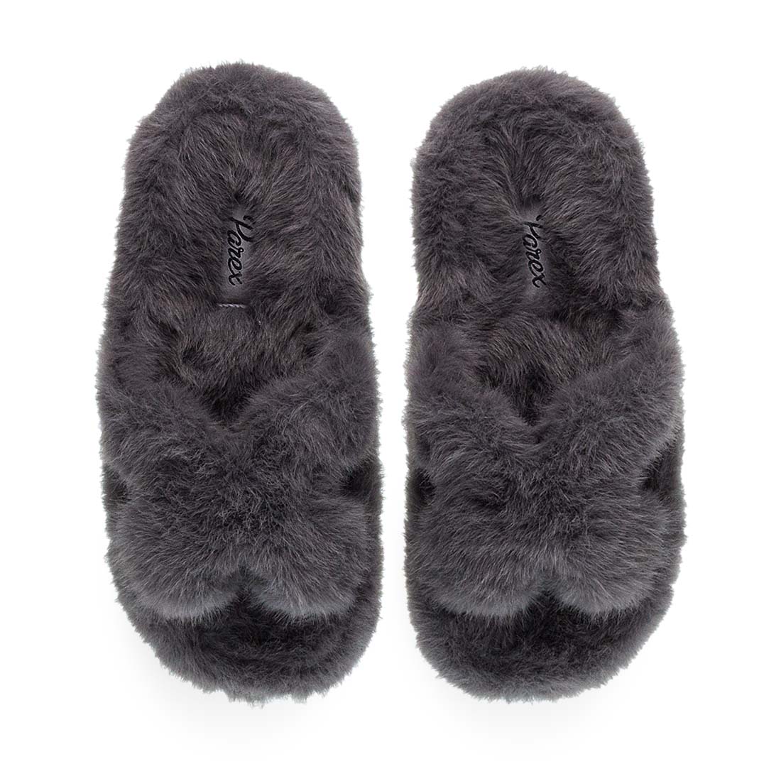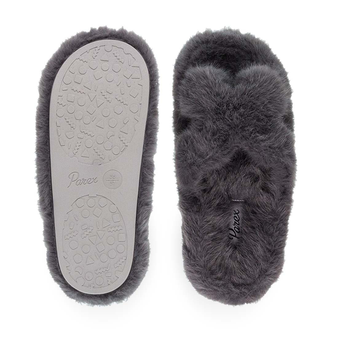 Γυναικείες παντόφλες σπιτιού Parex. Γυναικείες ανοιχτές παντόφλες Parex με χιαστί σχέδιο και απαλή γούνα. Άνετες και fashion-forward.