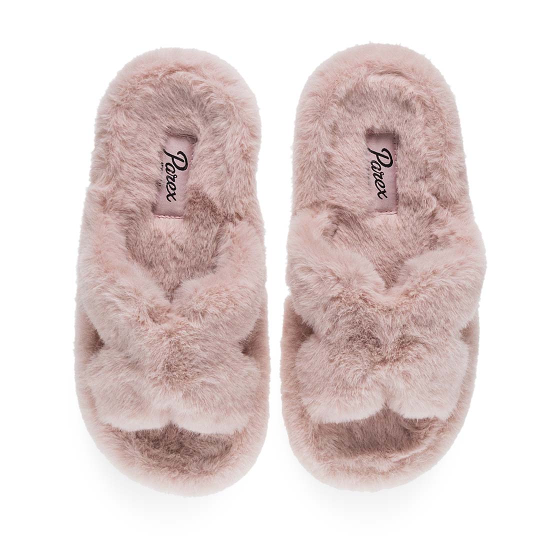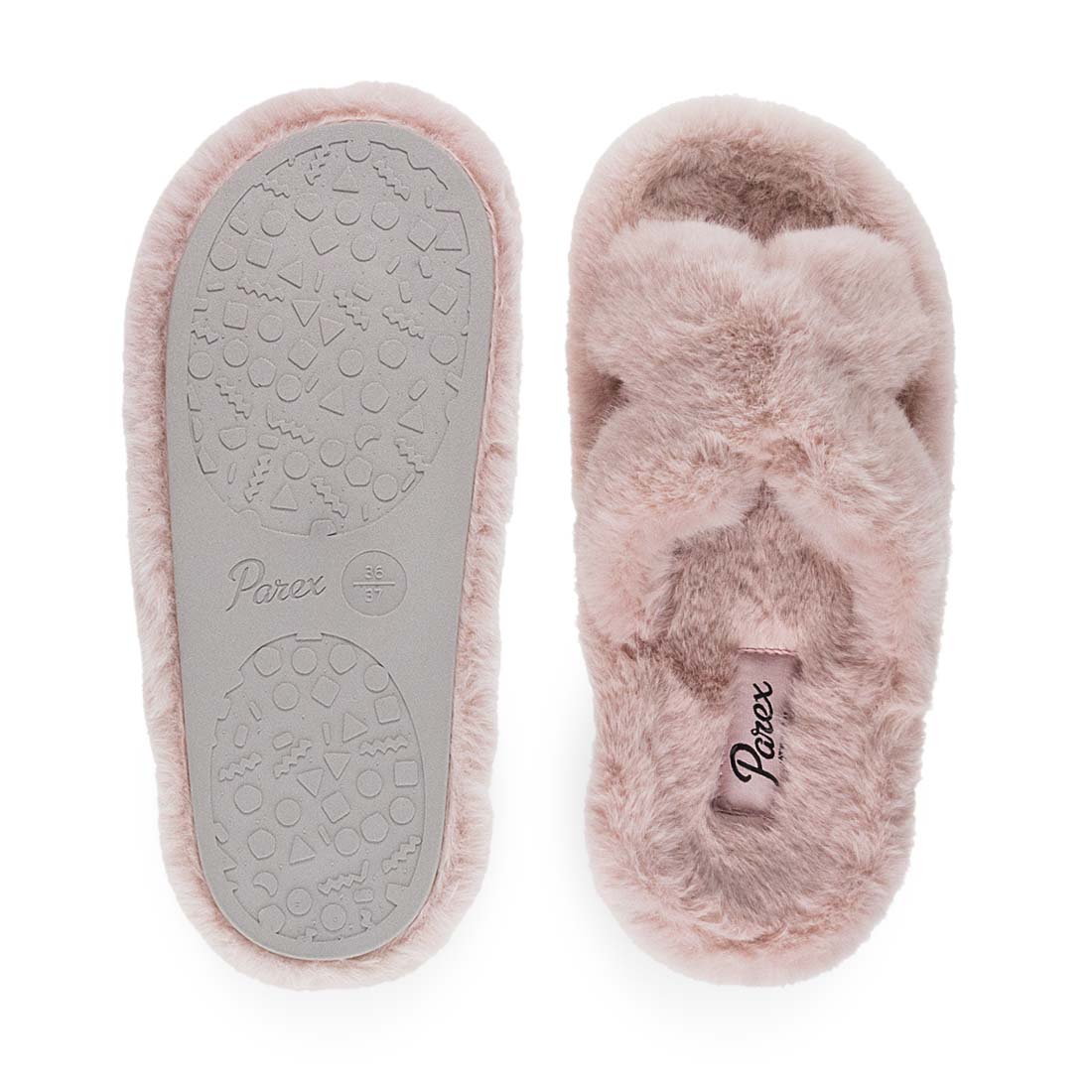 Γυναικείες παντόφλες σπιτιού Parex. Γυναικείες ανοιχτές παντόφλες Parex με χιαστί σχέδιο και απαλή γούνα. Άνετες και fashion-forward.