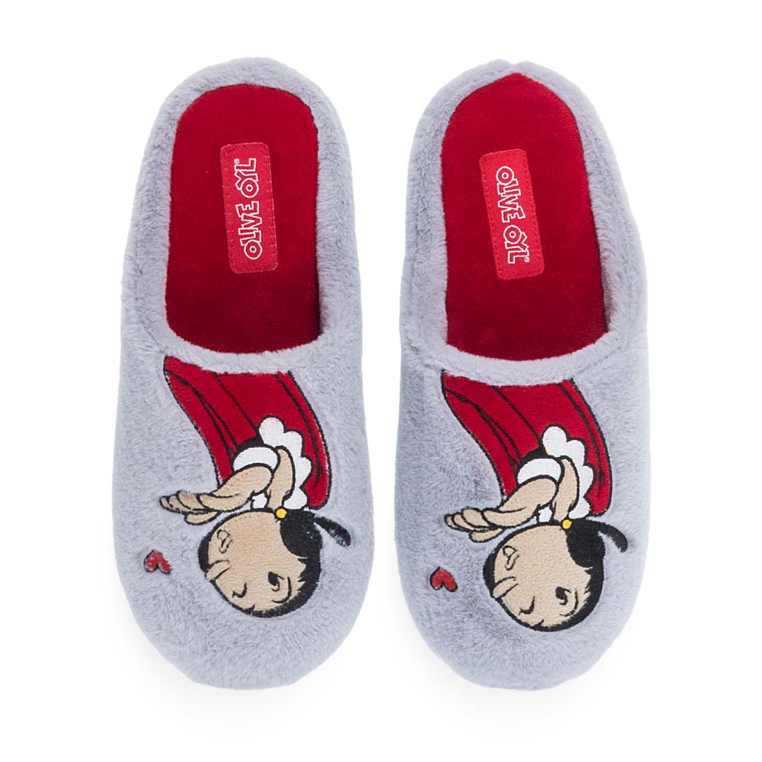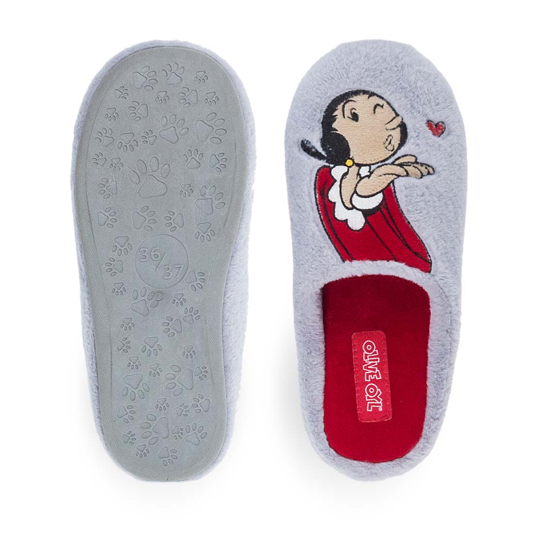 Γυναικείες παντόφλες σπιτιού από μαλακό βελουτέ ύφασμα. Με την αγαπημένη του Popeye, Olive. Ζεστός και μαλακός εσωτερικός πάτος, ιδανικός για να προστατεύει τα πόδια σας. Απαλές και ανθεκτικές για καθημερινή χρήση.