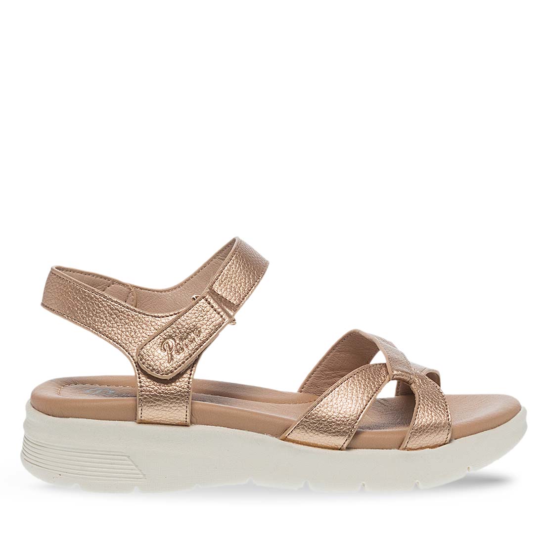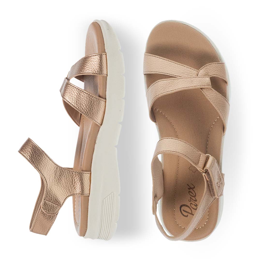 Γυναικεία πέδιλα Parex από συνθετικό δέρμα άριστης ποιότητας. Τέλειος συνδυασμός άνεσης και στιλ με αυτά τα γυναικεία πέδιλα με λοξά λουράκια και κλείσιμο velcro. Αναπαυτικός πάτος για ξεκούραστα βήματα από το πρωί στο γραφείο έως την απογευματινή σας βόλτα. Νιώστε το καλοκαίρι με αυτά τα υπέροχα και άνετα πέδιλα με δερμάτινο εσωτερικό πάτο