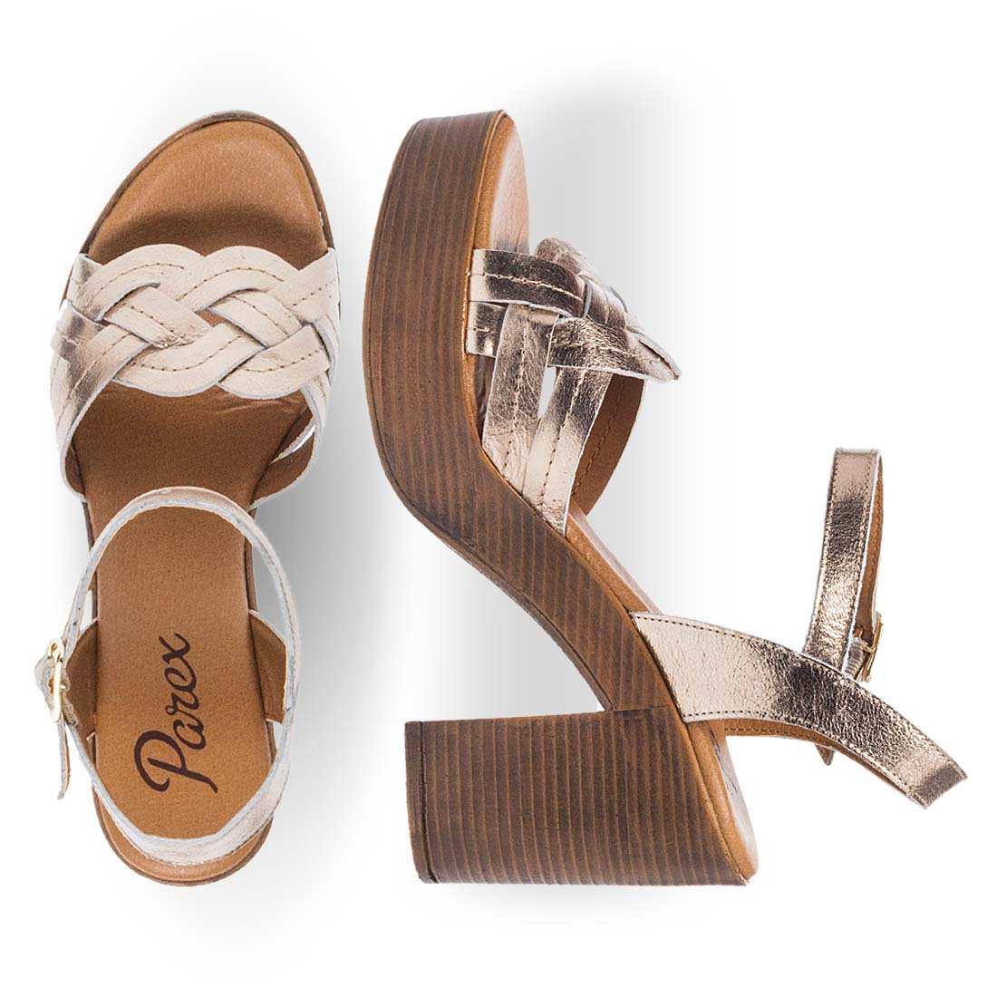 Γυναικεία δερμάτινα πέδιλα Parex. Κέρδισε πόντους στην καθημερινότητά σας με αυτά τα δερμάτινα πέδιλα ελληνικής κατασκευής από την Parex. Σχέδιο με φάσα σε σχέδιο πλεξούδα στο μπροστινό μέρος και λουράκι που κλείνει με αγκράφα στον αστράγαλο. Διαθέτουν αναπαυτικό δερμάτινο πάτο, σταθερή σόλα και ψηλό block τακούνι.Εντυπωσιακό σχέδιο που μπορείς να συνδυάσεις με ένα τζιν καμπάνα αλλά και με τα αέρινα καλοκαιρινά σου φορέματα. Γυναικεία πέδιλα Parex με ψηλό block τακούνι διαθέσιμα σε ταμπά,πορτοκαλί,πράσινο και μαύρο χρώμα.