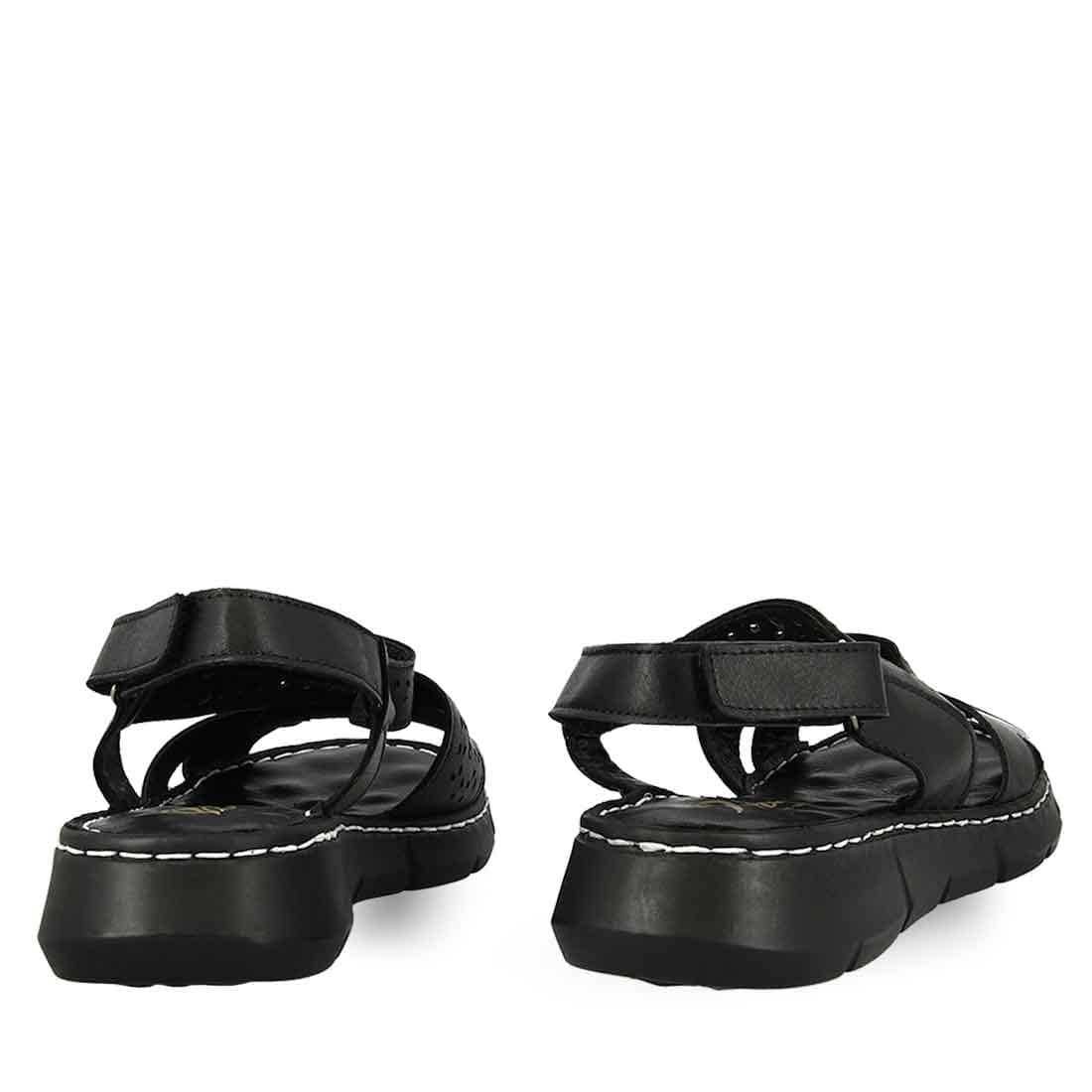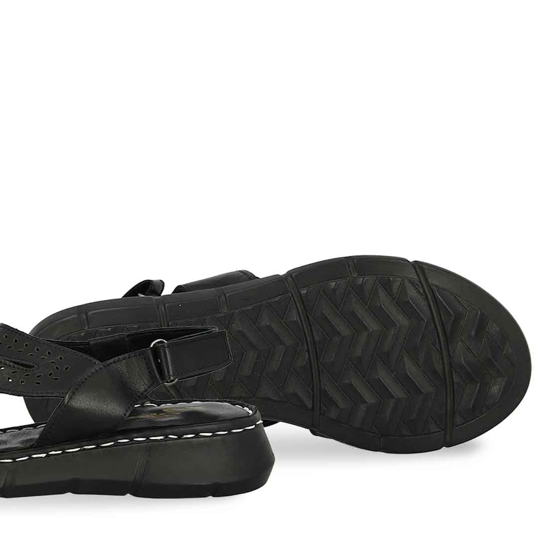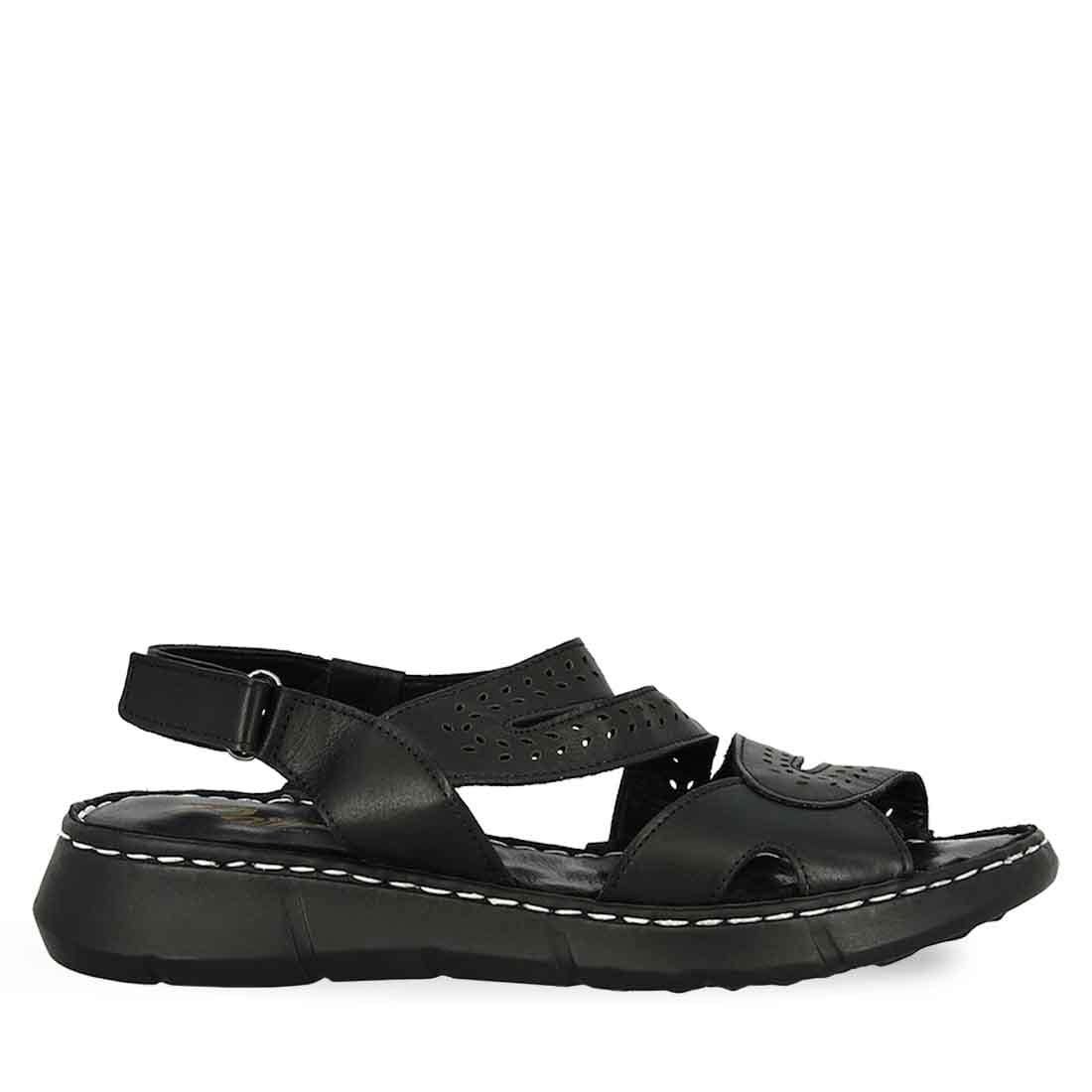 Πέδιλα δερμάτινα με λουράκια με laser cut και αυτοκόλλητο ρυθμιζόμενο λουράκι στο πίσω μέρος. Εύκολη εφαρμογή με ανθεκτική σόλα που δεν γλιστράει.