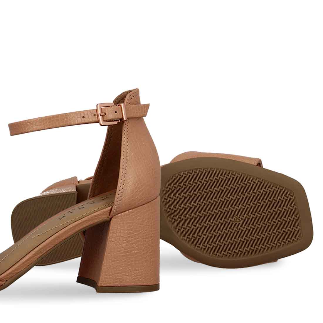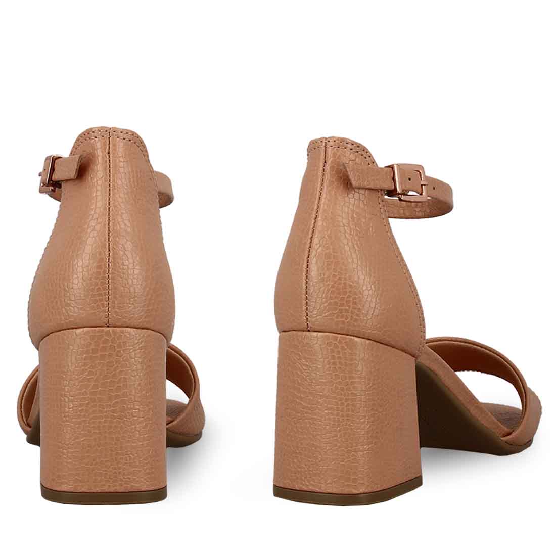 Γυναικεία πέδιλα καλοκαιρινά σε nude απόχρωση. Είναι σχεδιασμένα από συνθετικό δέρμα άριστης ποιότητας. Αυτά τα κομψά πέδιλα διαθέτουν ψηλό block τακούνι και κλείνουν με λουράκι αγκράφα. Έχουν εξαιρετικά μαλακό πάτημα με ανατομικές προδιαγραφές και ανθετική σόλα. Mια τέλεια επιλογή που θα ανανεώσει το καλοκαιρινό σας outfit.