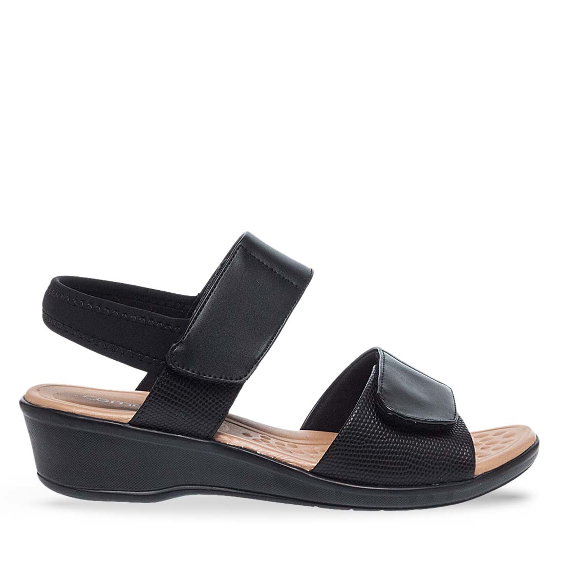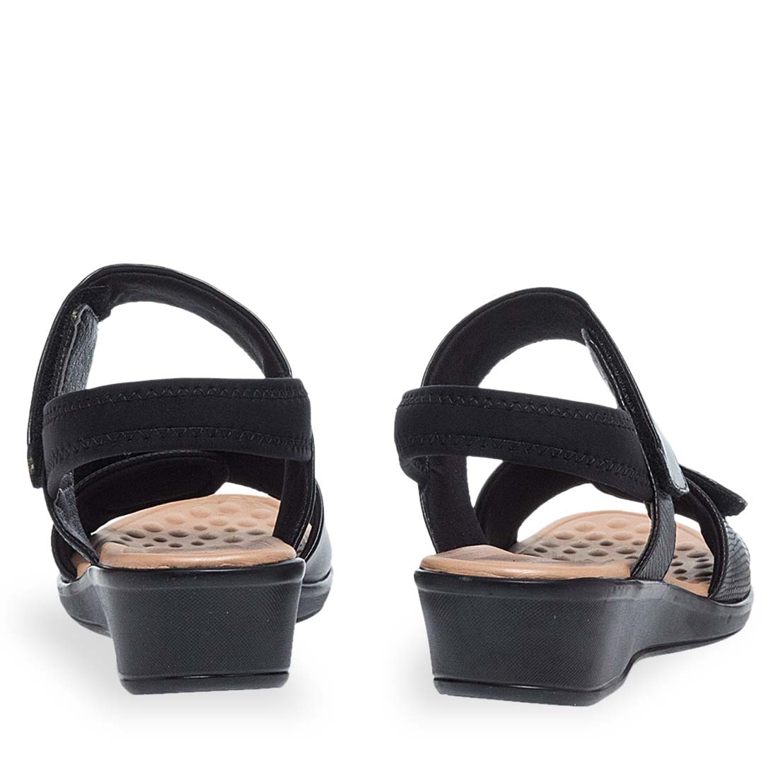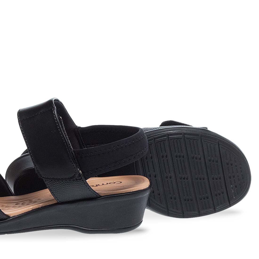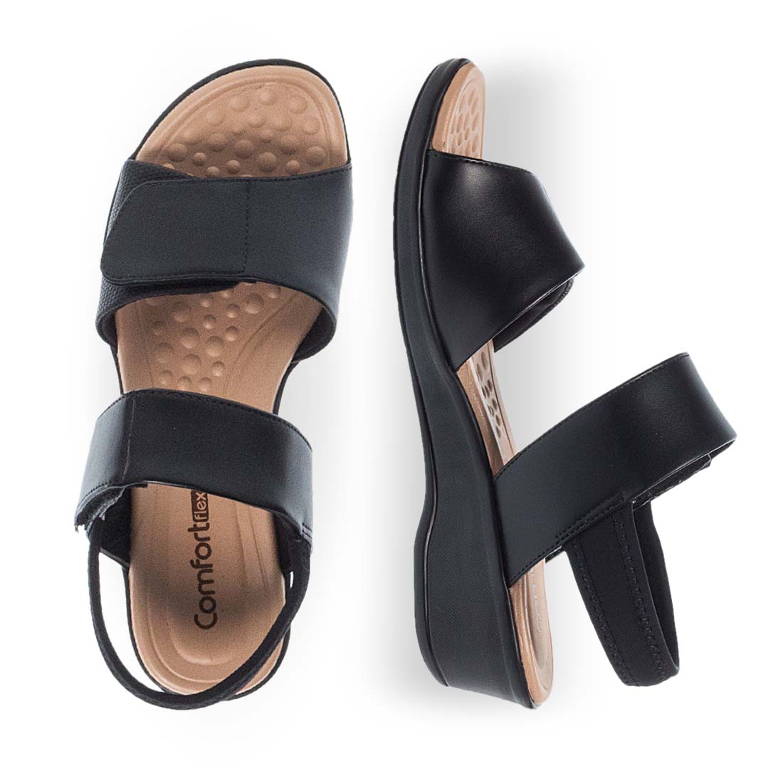 Γυναικεία μαύρα πέδιλα από τη νέα συλλογή Comfort Flex. Διαθέτουν λουράκια που αγακαλιάζουν το πόδι σας και κλείνουν με αυτοκόλλητο velcro. Διαθέτουν εξαιρετικά αναπαυτικό πέλμα και σταθερή σόλα που δεν γλιστράει. Μονόχρωμος και απλός σχεδιασμός που ταριάζει με όλα σας τα ρούχα.