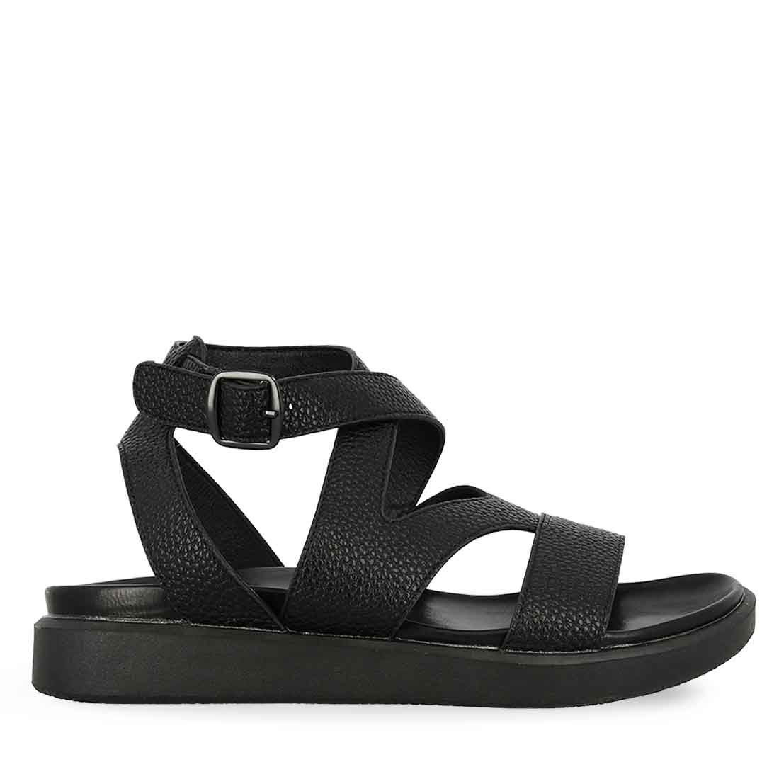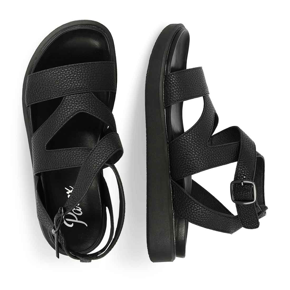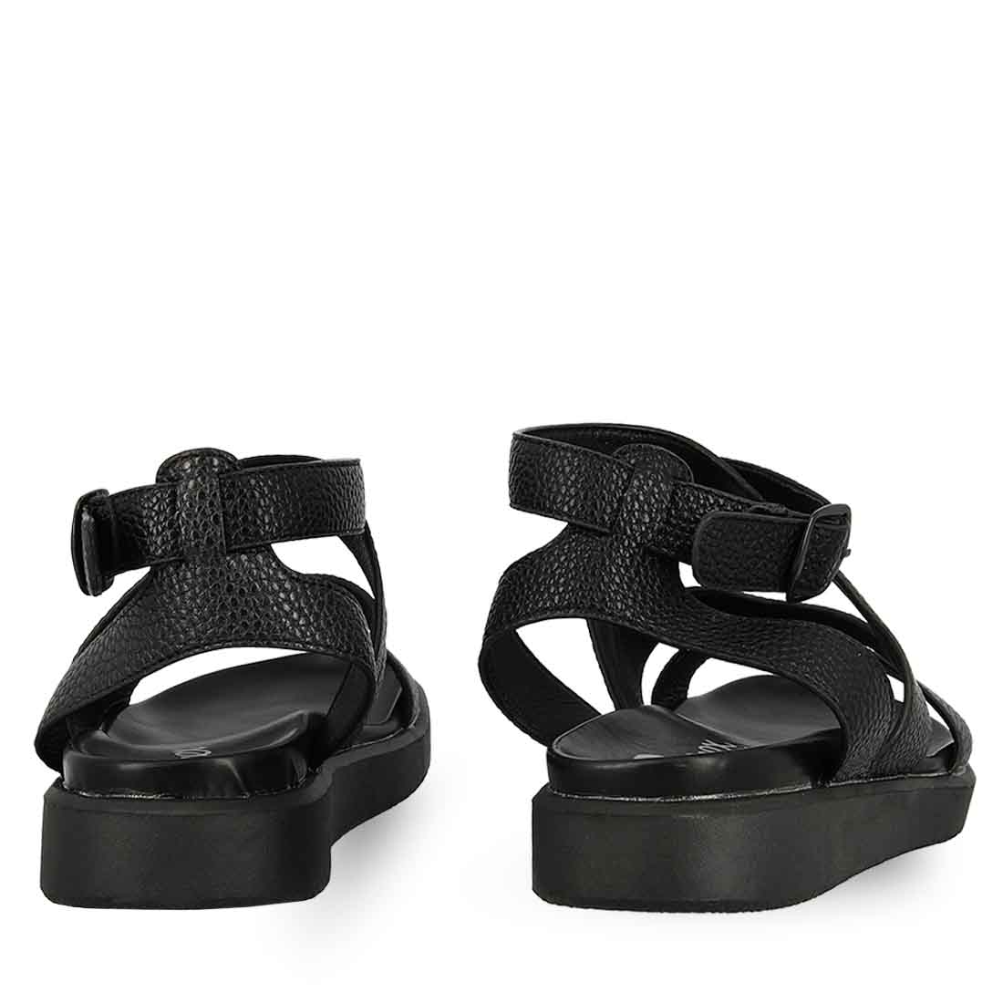 Μαύρα καθημερινά σανδάλια για άνετες εμφανίσεις. Κομψά και σταθερά. Διαθέτουν πολλά ελαστικά λουράκια και κλείνουν χαμηλά στον αστράγαλο.