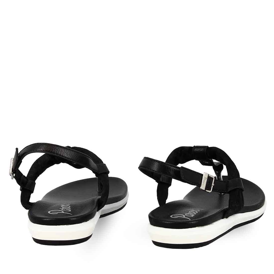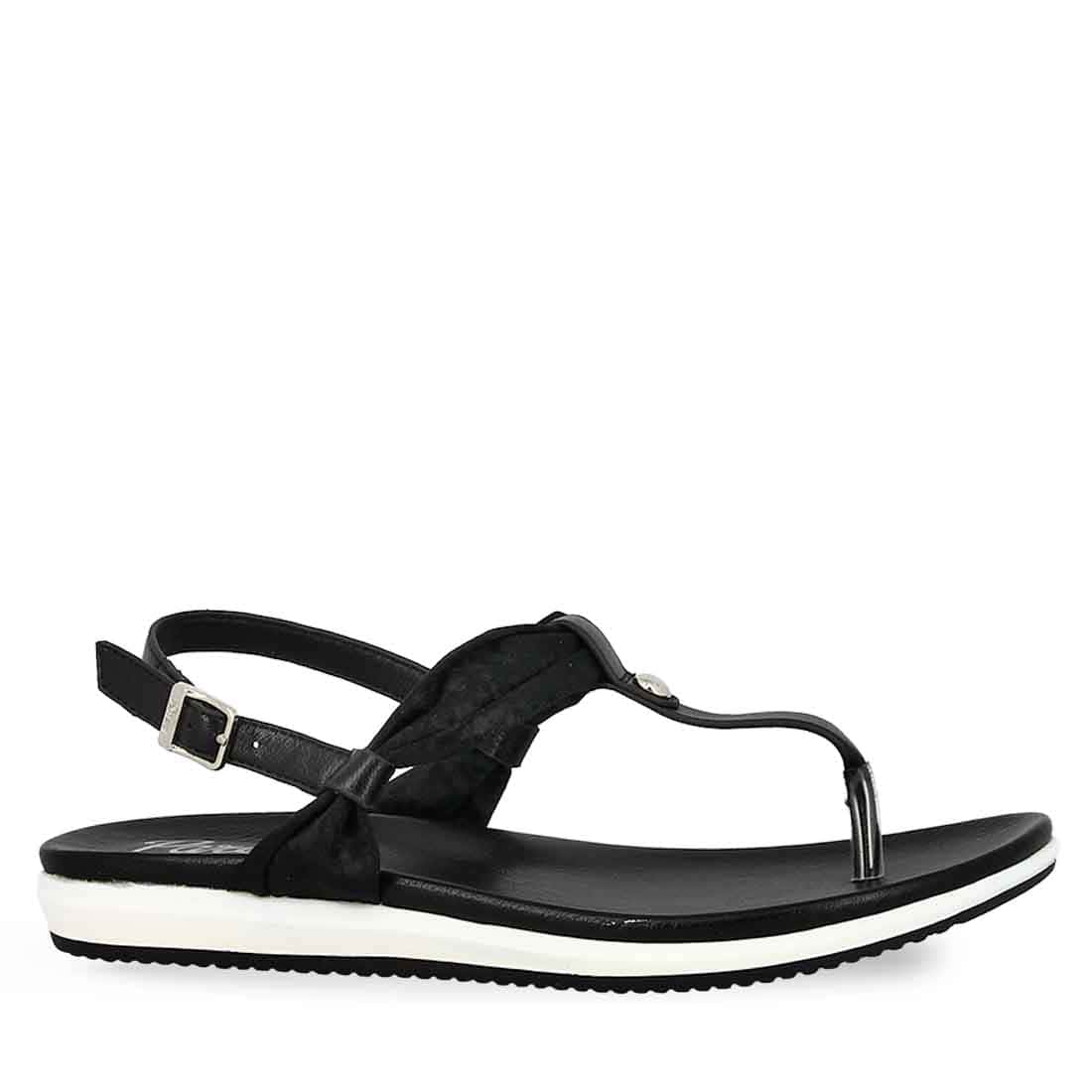 Σανδάλια με μοντέρνο σχέδιο στο πάνω μέρος. Τ - bar λουράκι και κλείσιμο με αγκράφα στο πλάι.