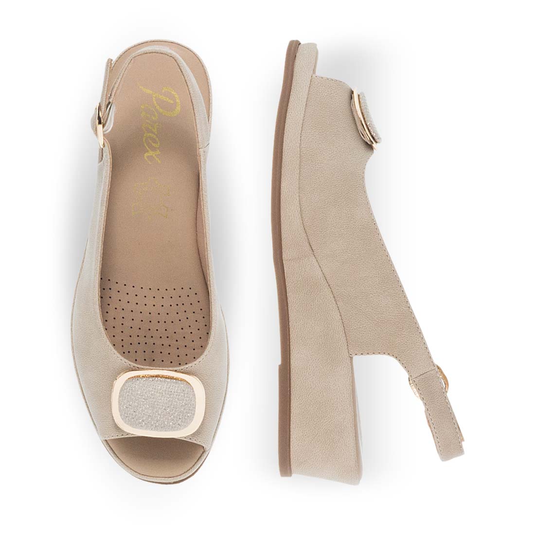 Γυναικεία άνετα πέδιλα Parex σε στιλ Peep toe. Διαθέτει λουράκι στο πίσω μέρος του ποδιού το οποίο κλείνει με αγκράφα και μεταλλικό στοιχείο που ξεχωρίζει στο μπροστά μέρος. Διαθέτουν μαλακό πέλμα και σταθερή σόλα πλατφόρμα ειδικά σχεδιασμένη για να σας χαρίζει ξεκούραστα βήματα. Μια κλασσική και διαχρονική δημιουργία που θα λατρέψετε για κάθε περίσταση. Διαθέσιμα σε μαύρο και μπεζ χρώμα ώστε να ταιριάζουν με όλη την γκαρνταρόμπα σας.