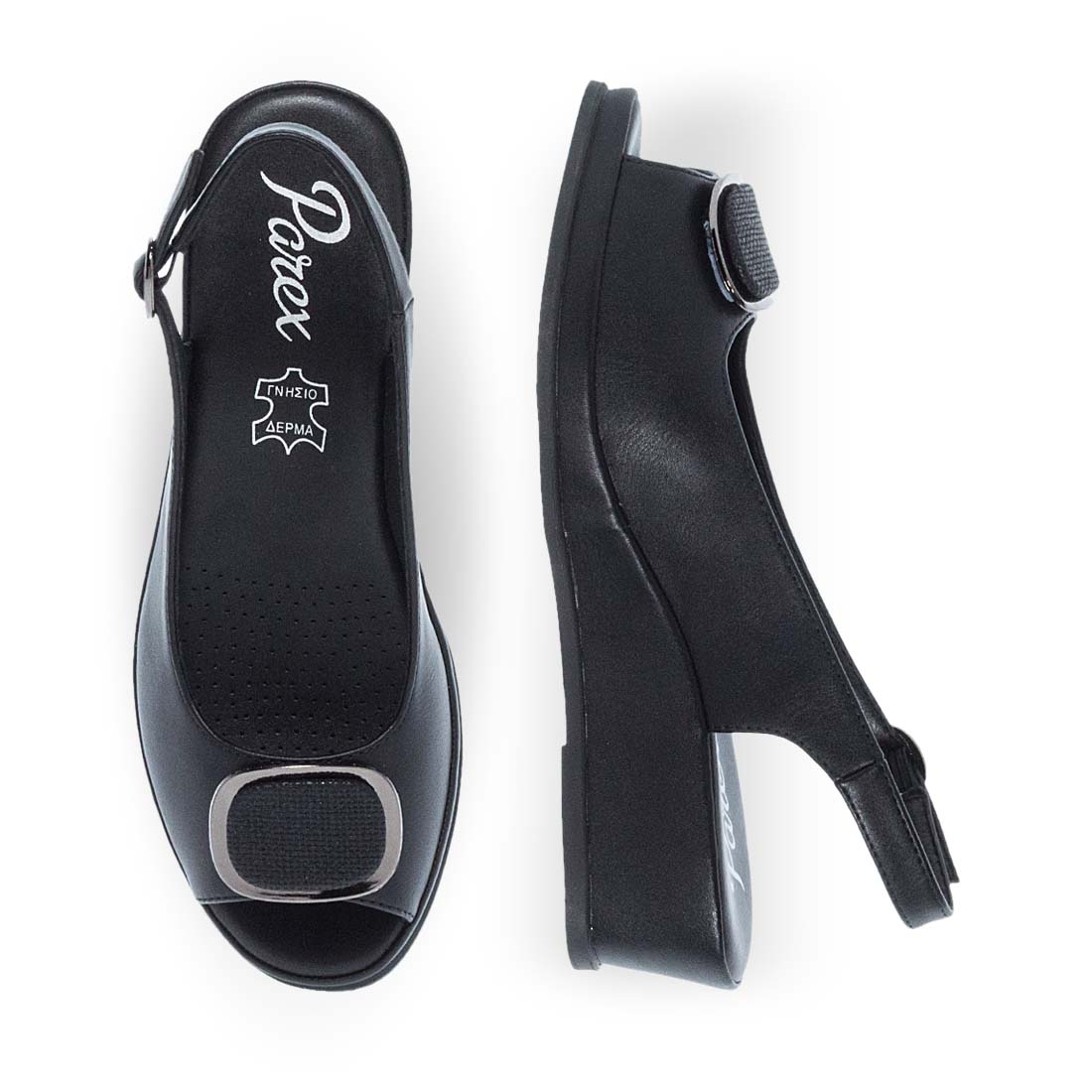 Γυναικεία άνετα πέδιλα Parex σε στιλ Peep toe. Διαθέτει λουράκι στο πίσω μέρος του ποδιού το οποίο κλείνει με αγκράφα και μεταλλικό στοιχείο που ξεχωρίζει στο μπροστά μέρος. Διαθέτουν μαλακό πέλμα και σταθερή σόλα πλατφόρμα ειδικά σχεδιασμένη για να σας χαρίζει ξεκούραστα βήματα. Μια κλασσική και διαχρονική δημιουργία που θα λατρέψετε για κάθε περίσταση. Διαθέσιμα σε μαύρο και μπεζ χρώμα ώστε να ταιριάζουν με όλη την γκαρνταρόμπα σας.