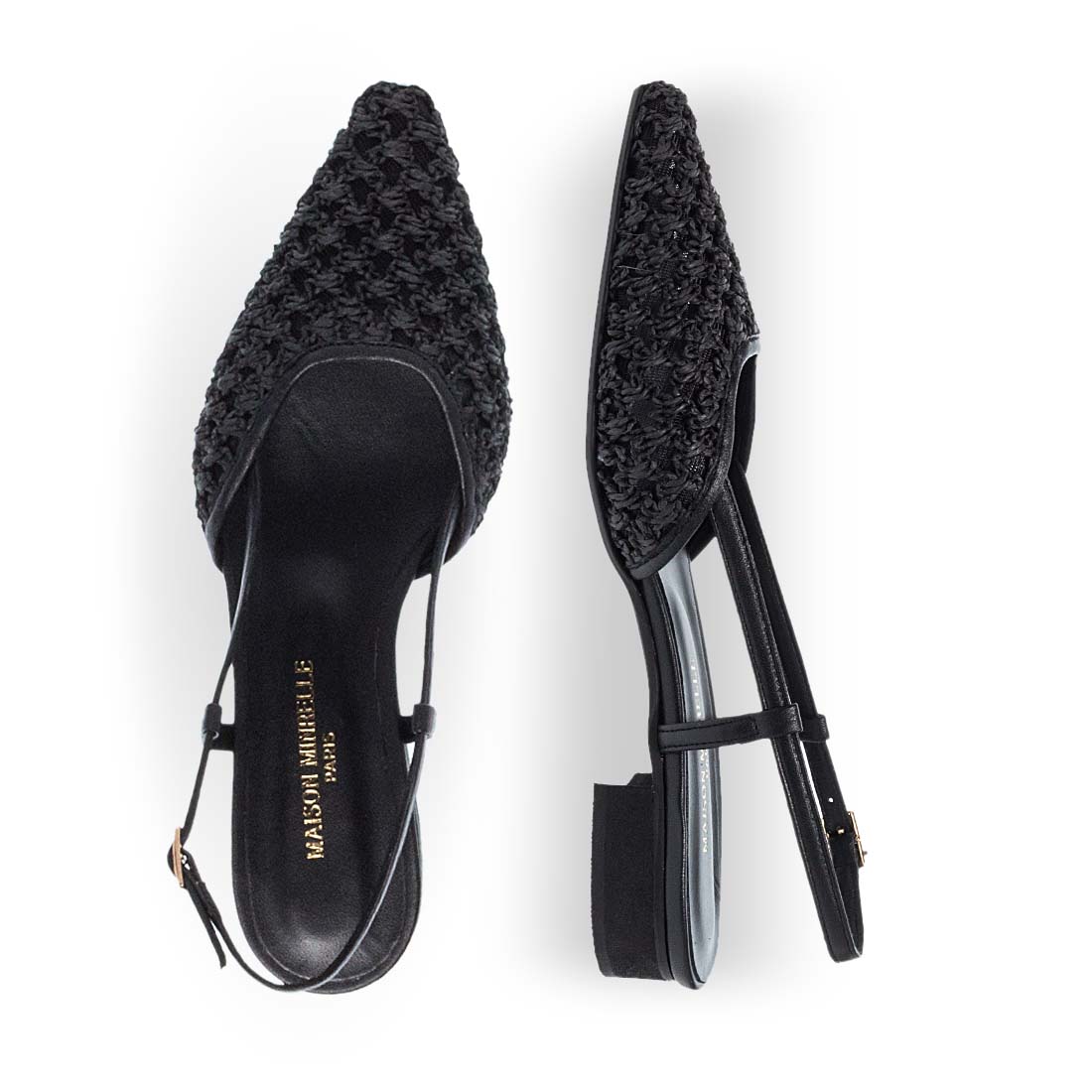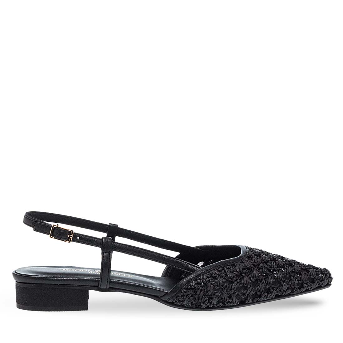 Γυναικεία πέδιλα Maison Minrelle. Συνδυάζοντας άνεση και στυλ, αυτό το slingback φλατ με πλεκτό σχέδιο είναι ιδανικό για καθημερινές chic εμφανίσεις. Η μυτερή φόρμα προσδίδει κομψότητα σε κάθε σύνολο.